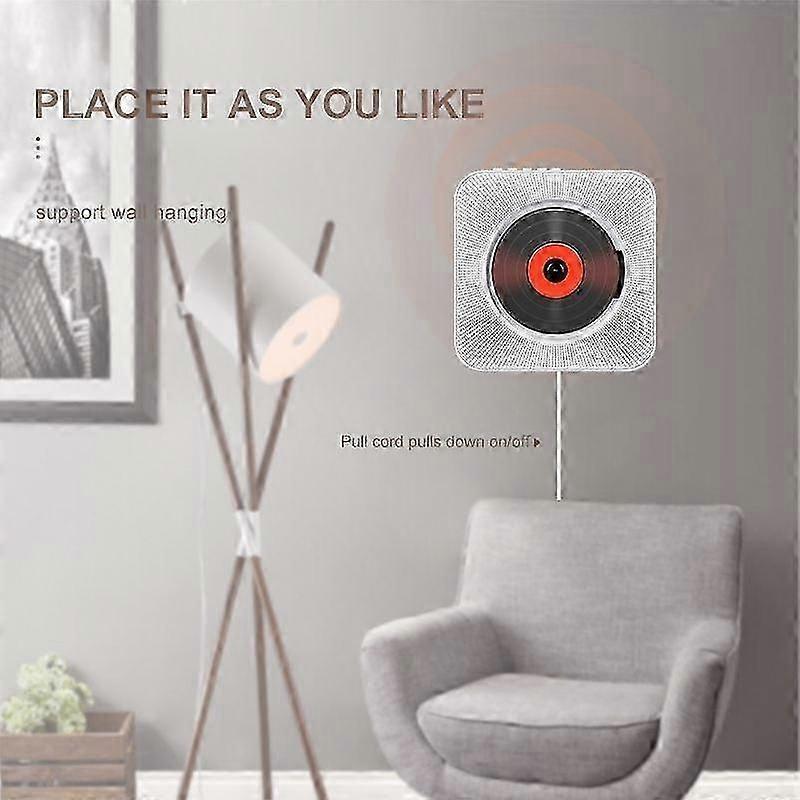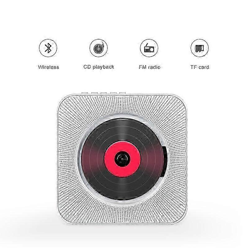 5 in 1 Function1. Portable CD player; 2. FM radio; 3. Bluetooth HiFi speaker; 4. Mini home speaker; 5. U disk player. Support CD, CD-R, CD-RW, MP3, WMA, easily play various CDs, built-in Bluetooth and 3.5mm Aux in/out and headphone jack, 1 USB port, support USB flash memory. Multifunction1. Built-in Bluetooth: You can connect your mobile phone/tablet/laptop via Bluetooth; 2. Support multiple formats: support CD, CD-R, CD-RW, MP3, WMA and other audio and video formats, play U disk, enjoy a variety of music. 3. The multi-functional remote control supports a distance of 5M. 4. Through the AUX jack, you can enjoy your favorite music through headphones. Connect the CD player to other external wired devices such as mobile phones, tablets or laptops via 3.5mm male to male audio cable and it will work Creative Home DecorationComes with a wall mount kit that can be mounted on the wall, and a tabletop stand for tables and desks. Put it in your home to create a convenient and elegant environment. Its unique pull switch design also brings more fun to your life, just pull the power cord to turn on/off the CD player. Enhance Your Lifestyle: With this CD player, whether it's relaxing party time, reading time, yoga time, it can create a romantic music atmosphere for you, take it with you anytime, anywhere. Its innovative and stylish appearance will enhance your lifestyle. Great choice as a gift, a practical and creative gift for family and friends.