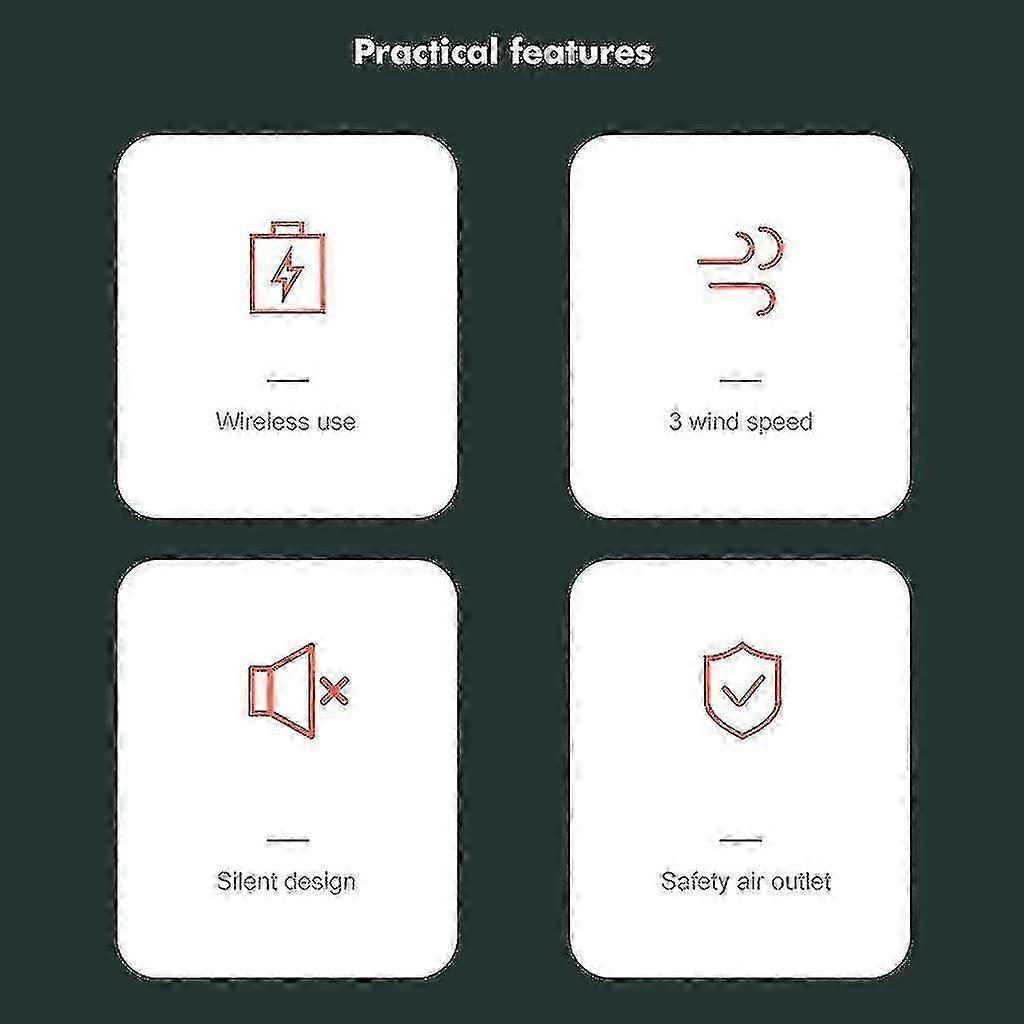 and high quality Feature: Portable design: This hanging neck sports fan adopts a personal, hands-free and headphones design, you can hang the fan around your neck and take it everywhere. 360 degree adjustable neckband fan: Adopted with the double wind-heads design that 360-degree universal adjustment, which allows you to adjust the best wind direction. Easily forwards change the mini fans, enjoy upward air blowing from neck side. A hands-free style for more convenient usage. Long working time: Built-in 4800mAh rechargeable battery that works with all USB-port devices without any limitations. Low noise, with 3 adjustable speeds. Durable to use: The neck band fan is made of ABS and silicone material. The Low current and high-speed motor greatly extend working time. Versatile fan: It can either be used as a desktop fan or handheld fan according to your individual needs. Perfect for office home travel camping. Specifications: Item Type: Portable Hanging Neck Fan Working current: 0.4A-2.0A Input voltaget: 5V Working powert: 1.6W-8W Usage time: about 4-15 hours Charing time: about 5 hours Battery capacityt: 4800mAh Rated input: DC5V 1A Rated power: 5W Working mode: three speeds Material: ABS Size: app. 670 x 65 x 33mm / 26.37 x 2.55 x 1.29in Optional Color: White,Pink,Green Quantity: 1set Note: Transition: 1cm=10mm=0.39inch No retail package. Please allow 0-1cm error due to manual measurement. pls make sure you do not mind before you bid. Due to the difference between different monitors, the picture may not reflect the actual color of the item. Thank you Package Includes: 1 x Mini Fan 1 x USB Charging Cable 1 x User Manual(other accessories demo in the picture is not included.)