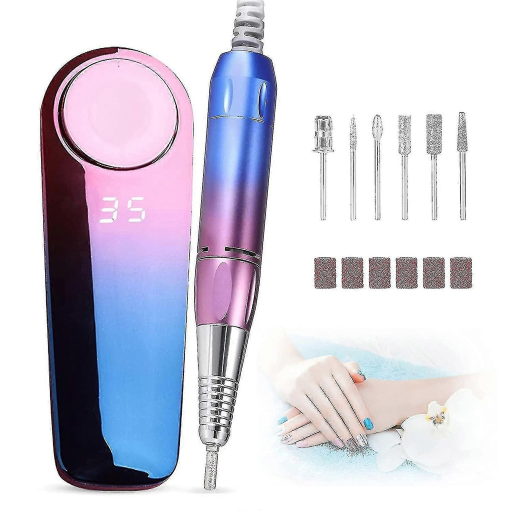 [High Speed Up to 35000RPM] - Equipped with high-quality bearings and a powerful motor, this acrylic nail drill provides efficient nail filing and works smoothly at high speed (0-35,000 RPM) by turning the control knob. It is perfect for nail salons and beginners to DIY at home. [PORTABLE AND LIGHTWEIGHT]-efile nail drill has a unique design, fashionable and gorgeous gradient color, and exquisite and compact appearance. It is very lightweight and portable and can fit in your pockets and bags. Lets start your manicure journey. [4000MAH Rechargeable Battery] - The electric nail drill has a built-in 4000mAh rechargeable battery, which takes about 1.5~2 hours to fully charge and can be used continuously for up to 6~10 hours without a power cord. You can enjoy manicures and manicures anywhere, even outdoors. [LED Screen and Easy to Use] - The nail drill's screen helps you get speed, rotation direction and battery status information. It is very convenient to use and can be adjusted with just one button control. Adjust forward and reverse directions for right- or left-handers. Variable speed control meets different usage needs. Make your manicure more efficient and perfect, saving you time. [Perfect Gift and Best Service] - This nail drill is a great gift for your wife, sisters, friends. Our nail drill kit comes with 6 nail drill bits and 6 sanding belts for engraving, polishing, carving, cutting, sharpening, sanding, polishing and more. Bringing you the safest and best manicure experience.