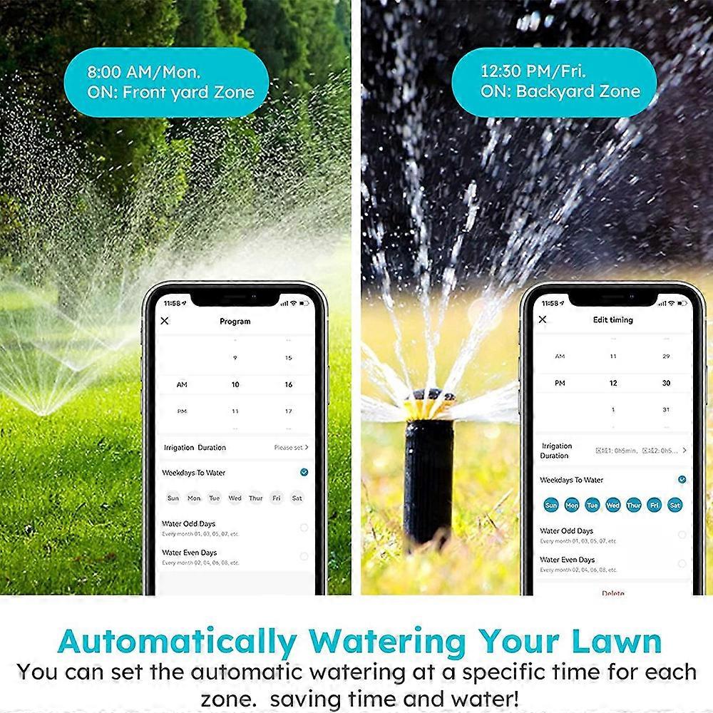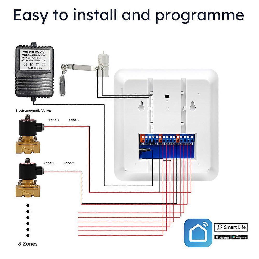 Smart Sprinkler Controller Make Your Irrigation Smart with Tuya and Smart Life Integration Take full control of your garden's watering system with the Smart Sprinkler Controller, designed to work seamlessly with Tuya Smart and Smart Life apps. This intelligent device offers convenience, efficiency, and water savings, making it an essential tool for any garden or farm. Key Features: 8-Zone Control: Manage up to 8 different zones, allowing for customized watering schedules tailored to your garden's needs. Remote Control: Monitor and control your irrigation system from anywhere using your smartphone. Automatic Watering: Set precise watering schedules to ensure your plants get the right amount of water at the right time. Save Water: Advanced features like rain, snow, and wind delay help you conserve water and reduce utility bills by up to 50%. Easy Installation: Replace your old controller effortlessly. Simply plug existing wires into the smart controller and follow the step-by-step setup instructions on the Smart Life app. Installation can be completed in just 30 minutes. Weather Adaptability: Enable location access to automatically skip watering on rainy or snowy days, based on local weather conditions. Device Sharing: Share control with family members or garden managers, ensuring everyone can contribute to garden care. Product Specifications: Model: YBC-C001(B) Material: Waterproof Neoprene Colors Available: Blue, Pink, Green, Orange, Black Dimensions: 20cm x 10cm x 10cm Weight: 80g (Net), 85g (Gross) Package Includes: OPP bag, user manual Compatibility: Supports Alexa, Google Assistant for voice control Ports and Functions: 1-8: Electromagnetic valve terminals C: Common terminal for valves M: Master valve (if needed) SP, SC: External AC24V power supply output S1, S2: Rain sensor Versatile Use: Applications: Ideal for front yards, backyards, farmland, and greenhouses. Upgrade your irrigation system with the Smart Sprinkler Controller and enjoy the benefits of a smart, efficient, and eco-friendly garden.