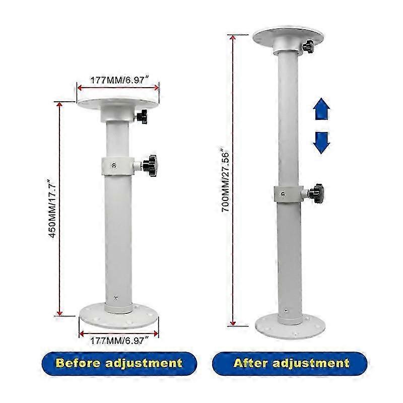 [New Upgrade Base] The Place Where The Pillar Connected To The Base Is Aluminum Alloy There Is No Difference In Appearance And Function, And The Structure Is More Stable. Add A Nut, Make The Top Lockable and Stable. [Removable Stand]The Rv Table Bracket Can Be Removed. If You Need to Remove The Table, Just Remove The Bottom. This Can Effectively Space and Is Very Convenient And Quick. []The Rv Table Leg Has A Humanized Design. The Installation Interface of The Base on The Rv Table Bracket Is Equipped With a Stop Device, Which Can Avoid Being Too Tight And Unable to Be Disassembled. [Perfect Materials And Long Service Life] Rv Table Bracket Is Made Of High-Quality Aluminum Material, Rust-Proof, -, Not Easy To Age, Sturdy And , And Has A Long Service Life. Pedestal Stand Is Very Suitable for Station Wagons, Rv, Sea Yachts, , , Caravan etc. You Can Buy Them With Confidence. Adjustable Top and Bottom Base Diameter: 177mm Maximum Height: 700mm; Minimum Height: 450mm. You can adjust the height of the base bracket according to your own needs to meet the needs of different occasions, and it is easy to disassemble and assemble. 1. Install a base at the bottom of the desktop. 2. Install another base on the floor. 3. Rotate the lifting column into the base on the floor. 4. Insert the table top with the base installed into the lifting column. Small Space, More Reasonable Use The Rv table holder can be removed. If you need to remove the table, just remove the bottom. This effectively saves your space and is very convenient and fast. Widely Used Compatible with Boat, Yacht, RV, , Caravan, and more. Color: silver Material: aluminum alloy Package Contents: 1 x Removable lifting table leg kit Only the above package content, other products are not included. Note: Light reflection and different displays may cause the color of the item in the picture a little different from the real thing. The measurement allowed error is +/- 1-3cm.