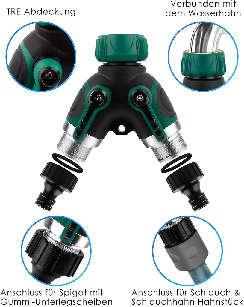 Durable Material: The rubber outer wall is made of high quality ABS plastic, corrosion-resistant, rust-proof zinc alloy material, durable, wear-resistant, impact-resistant, high water pressure resistant Easy to install: 360 free rotation, easy to connect, You can screw the Y-shaped rotor into the faucet through suitable accessories and then connect the two hoses to the flow channel for use. Individually adjustable: With the help of the valve switch on the two-way distributor, the water volume of each connection port can be adjusted individually can be adjusted and closed, which can be used for watering, garden watering, pet bathing, etc. Prevent water leakage: The connector plug can be easily connected to the water pipe, and the built-in water plug can effectively prevent water leakage.< /p> Package Contents: 2-way distributor*1, 3/4 faucet*2, rubber seal*4, just choose the right adapter for your faucet