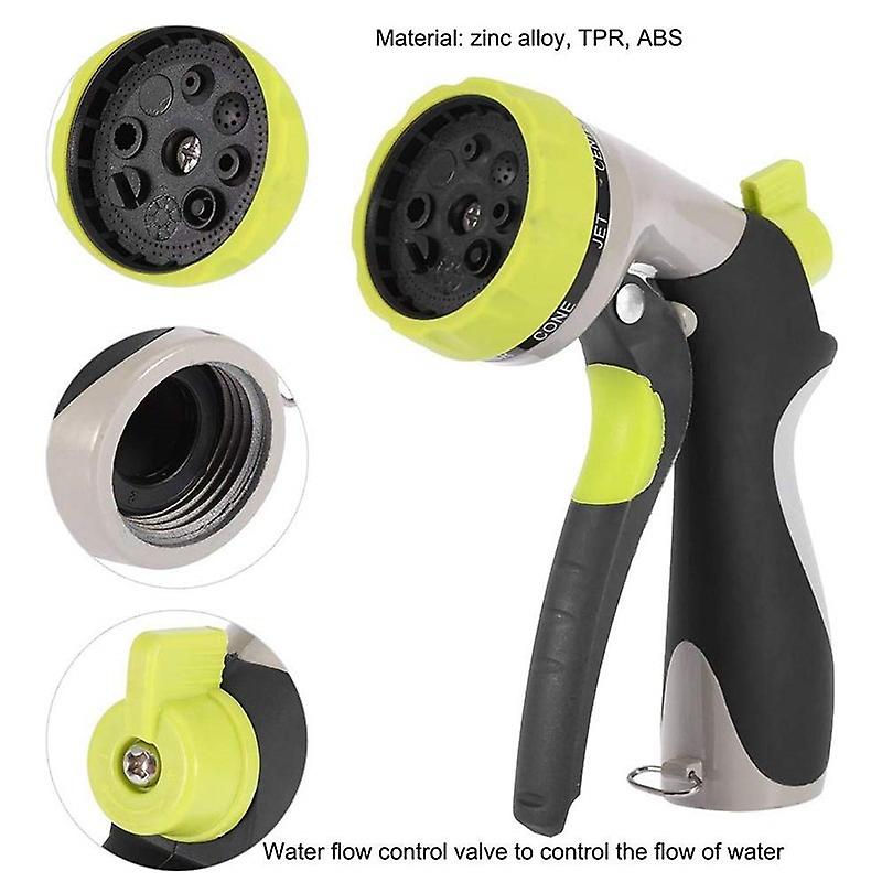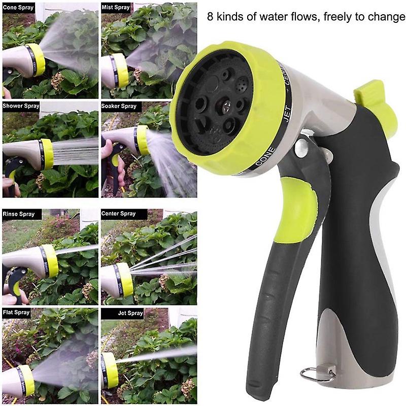 Universal Fit: Suitable for common hose systems from well-known manufacturers. Couplings are universal and made of stainless steel brass. 8 jet settings: 10 functions (8 jet settings, min/max pressure setting, jet probe lock function) for a wide range of applications and fatigue-free work. The garden shower is made entirely of metal, but still fits well, is not heavy in the hand and is covered with non-slip rubber, which makes it particularly stable. Wide range of uses: Areas of application: sandblasting lawns, watering gardens, Watering flowers, cleaning outdoor surfaces (e.g. terraces), also suitable for washing cars or targeted watering of green areas. Everything included: The scope of delivery also includes 2 replacement rubber seals for the garden hose. Premium quality: Also suitable for hot water. Suitable for pressures up to 10 bar.
