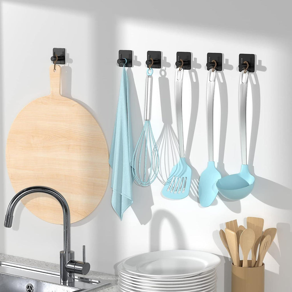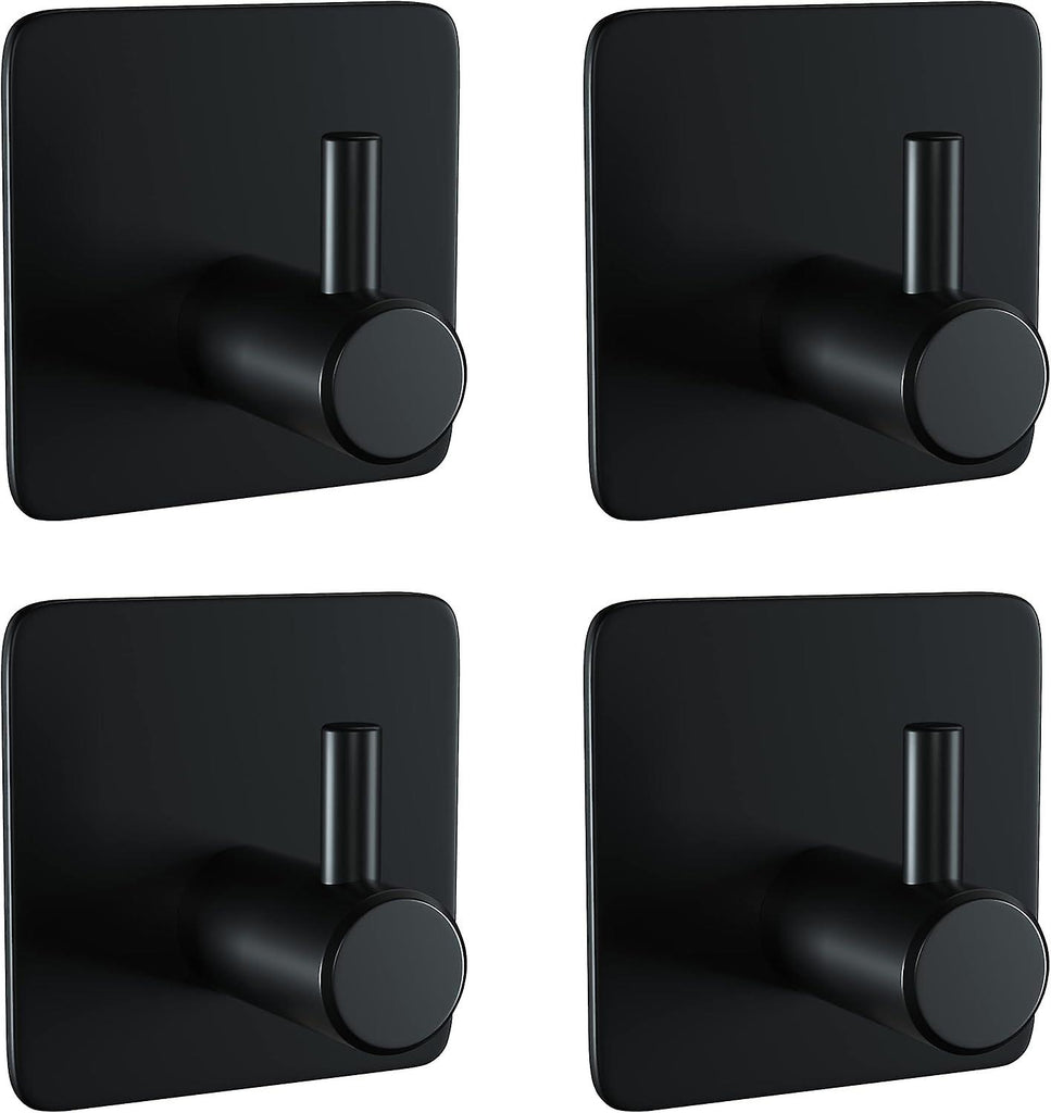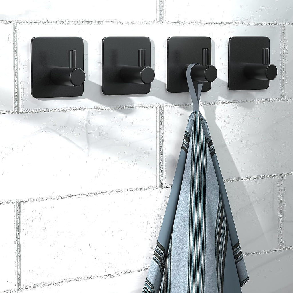 4 Pcs Self-adhesive Hooks, Towel Holder Without Drilling, Bathrobe Hook (black)
