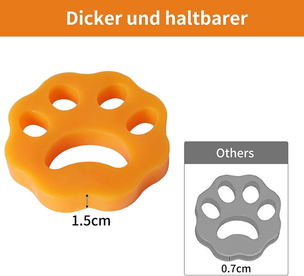 Size: 6 animal hair catchers, green and orange random (9 x 9 x 1.5 cm). Can give you more options for blurry screens Excellent Material: The pet hair catcher for laundry is made of polyurethane glue, which is durable, non-toxic and odorless, and the special design leaves no marks on cleaning products. Multifunction: Pet hair catcher with extremely strong adhesion, not only in the dryer and washing machine, the pet hair remover can be used directly to remove dust, hair and lint from clothes, keyboards and even cell phones. Reusable & Durable: Unlike the lint roller, our pet hair remover is reusable. You just need to wash your pet hair remover with water and it will be new. Save money and be more environmentally friendly.
