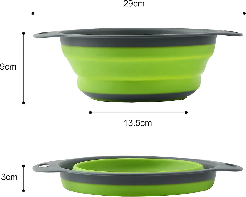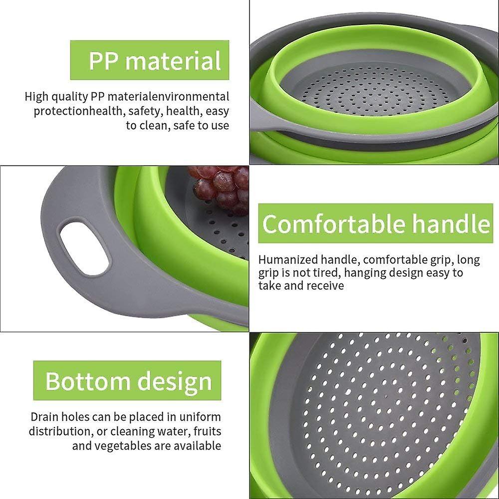 describe: SIZE FOR KITCHEN WASHING: 3 sizes of strainers are suitable for cleaning and filtering most foods. Includes 2.5 qt strainer and 4 qt strainer. Space saving design: The pasta drain is collapsible so it won't take up too much space in your kitchen cabinets. Stack it on top of other cookware in the pantry or set it aside to save space. Keep your kitchen clean and tidy. Robust design and FDA approved: The filter is made of non-toxic, BPA-free materials and is completely safe for the health and safety of consumers FDA approved. The practical and ergonomic design of the filter makes cooking easier than ever thanks to the perfect stability of the non-slip handle. Multifunctional kitchen appliance: Used to drain most foods such as pasta, macaroni, Potatoes, cauliflower, green beans, carrots, spinach and other vegetables are used. Use these strainers to rinse lettuce, fresh fruits and vegetables. BEST KITCHEN POST: These premium strainers and coarse strainers allow you to wash fresh foods quickly, easily and effortlessly, Rinse, shake and even serve. The drainage holes are evenly spaced so fruits and vegetables can drain quickly and easily. Dishwasher safe and heat resistant up to 230F.