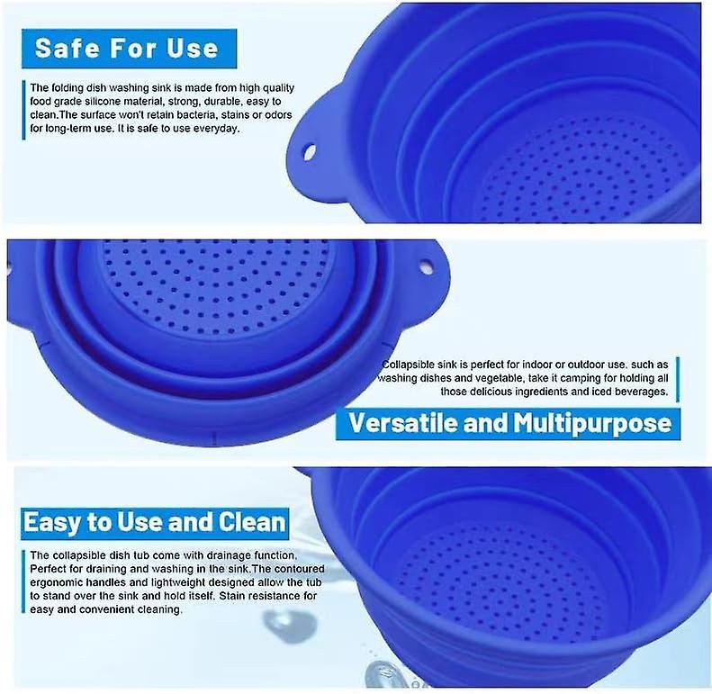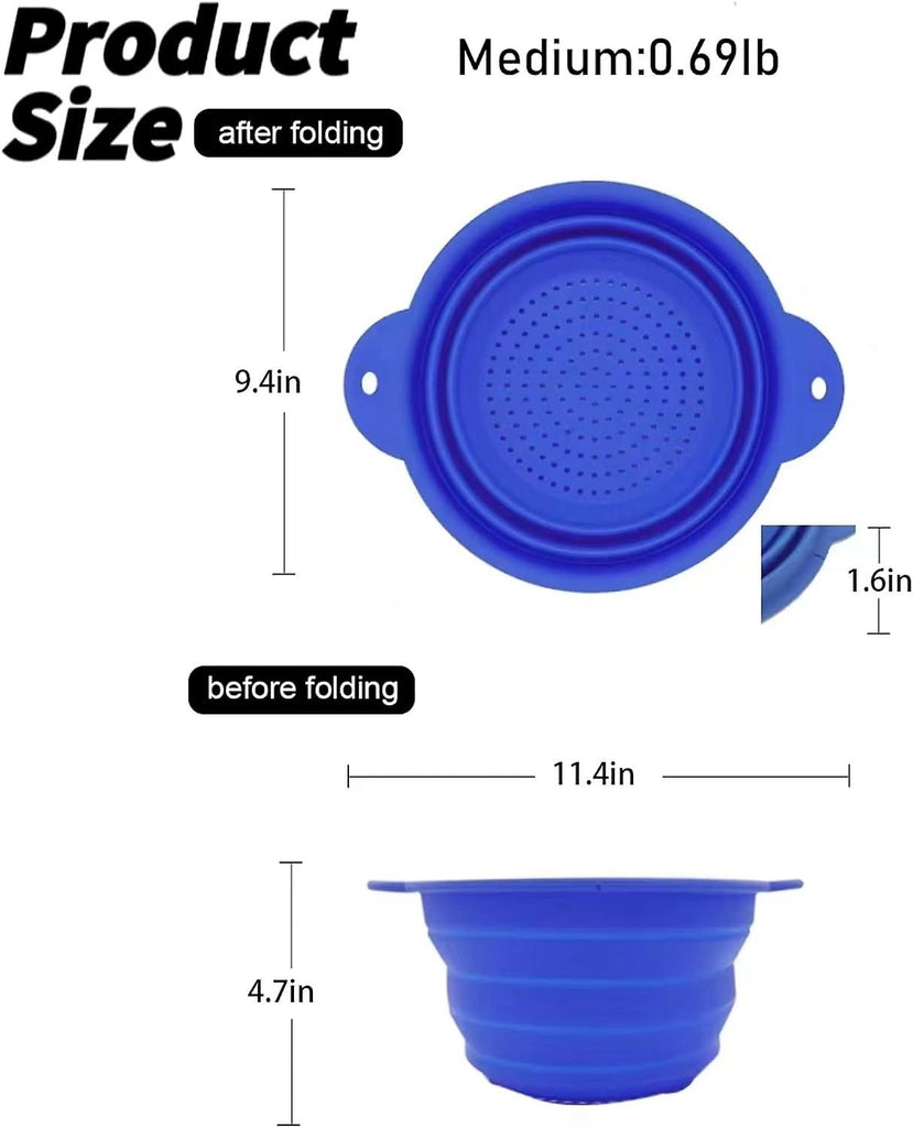 describe: [Large capacity, space saving] The collapsible version has a space-saving design as it is foldable and fits perfectly in any kitchen sink. With its collapsible design, our strainer is a space saver that can be easily stored in any kitchen cabinet due to its large capacity. [High-quality material] This bendable silicone strap with handle is made of high-quality silicone , which is non-toxic and environmentally friendly and can be used for a long time. Our collapsible colander is the perfect tool for everyday kitchen tasks such as rinsing, draining, draining and more. [MULTIPURPOSE] The silicone folding wire is a versatile solution for faster, easier and more efficient food preparation. Fold it up for storage or take it camping, traveling or barbecuing.