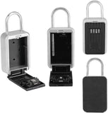 Durable material. Heavy-duty aluminum alloy construction protects the case from damage by hammers, saws, drills, etc., impact, corrosion and weather resistant High security. This product is an adjustable combination lock with 4 dials. It can be converted to non-resettable mode for added security Large storage capacity. The box has ample space to store valuables such as keys, USB sticks, business cards, etc. You can put them on when you go to work or on vacation Easy operation. It is easy to install and use. You can set your favorite numbers as passwords. 4-digit combination is easy to remember and reset Wide application. The key box can be used in many areas. It is suitable for outdoor use. It can be hung on the door for emergency entry, vacation home, pet sitters, etc.