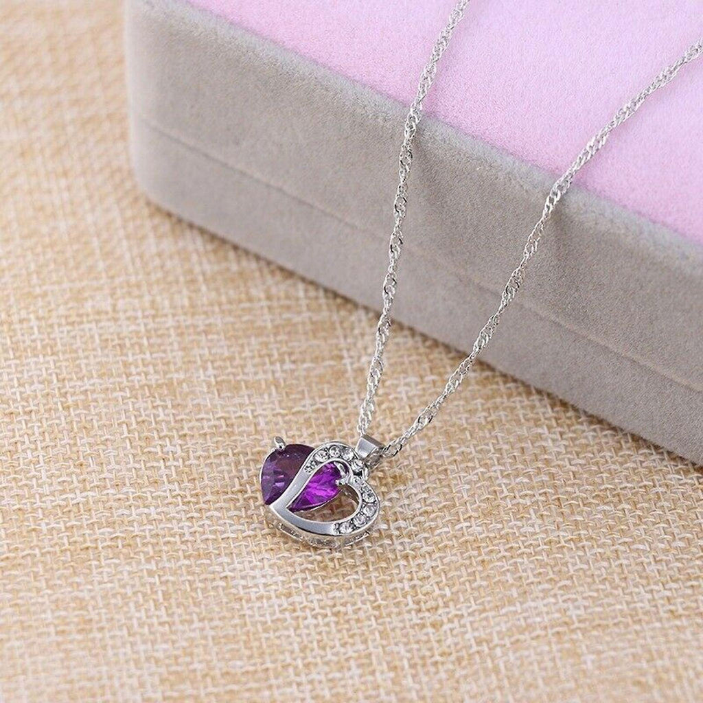 Necklace 925 Silver Women's Necklace Crystal Heart Shape Pendant Purple Best Gift For Parties, Valentine's Day, Christmas, Birthday
