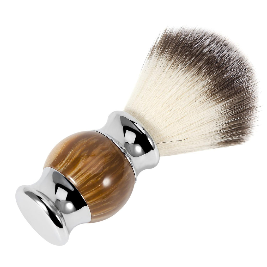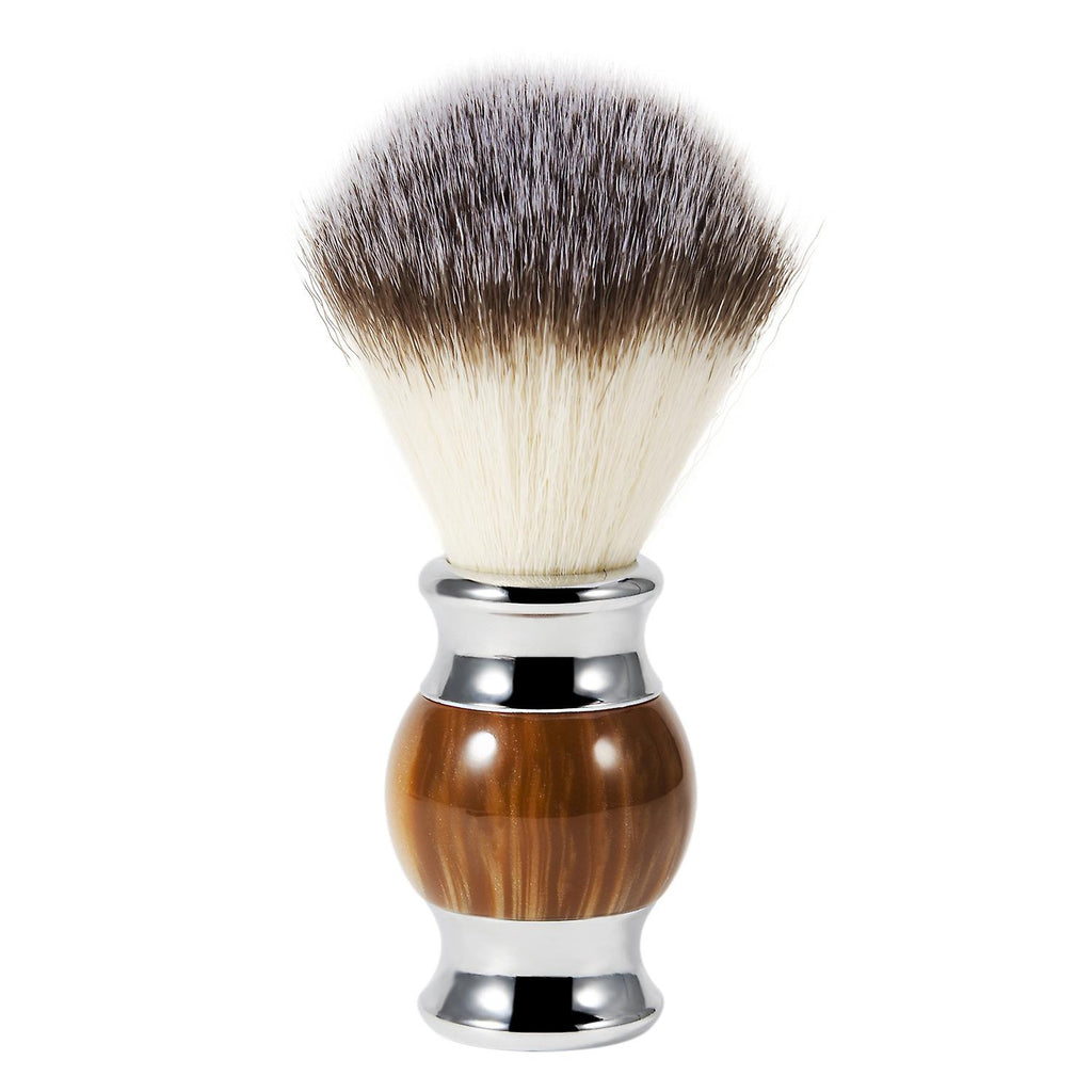 Noble shaving brush: No badger dies in China for our shaving brush. We use high quality synthetic hair, no less than badger hair. The dense brush head guarantees a stable foam. SUSTAINABLE: Our shaving brushes are environmentally friendly, pet-friendly and a perfect replacement for real hair brushes. The perfect shaving brush for men and women! SUITABLE FOR ALL SKIN TYPES: The shaving brush is very gentle on the skin thanks to its synthetic fibers and offers the same foam performance as a shaving brush made of badger hair. BEAUTIFUL GIFT IDEA: Due to the strong price-performance ratio, the attractive look and the high-quality packaging, the shaving brush is ideal as a gift. An extraordinary gift idea that will delight every recipient.