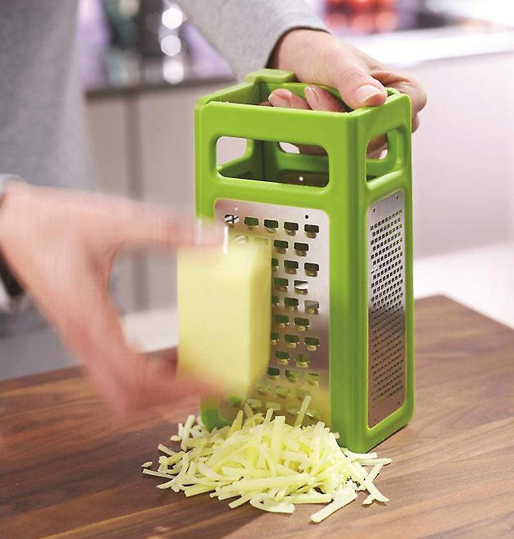 Square Grater With Four Sides, Stainless Steel Blades, Green