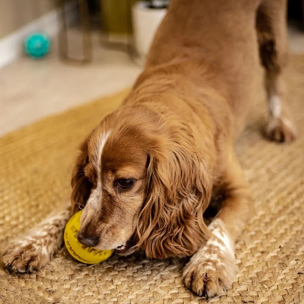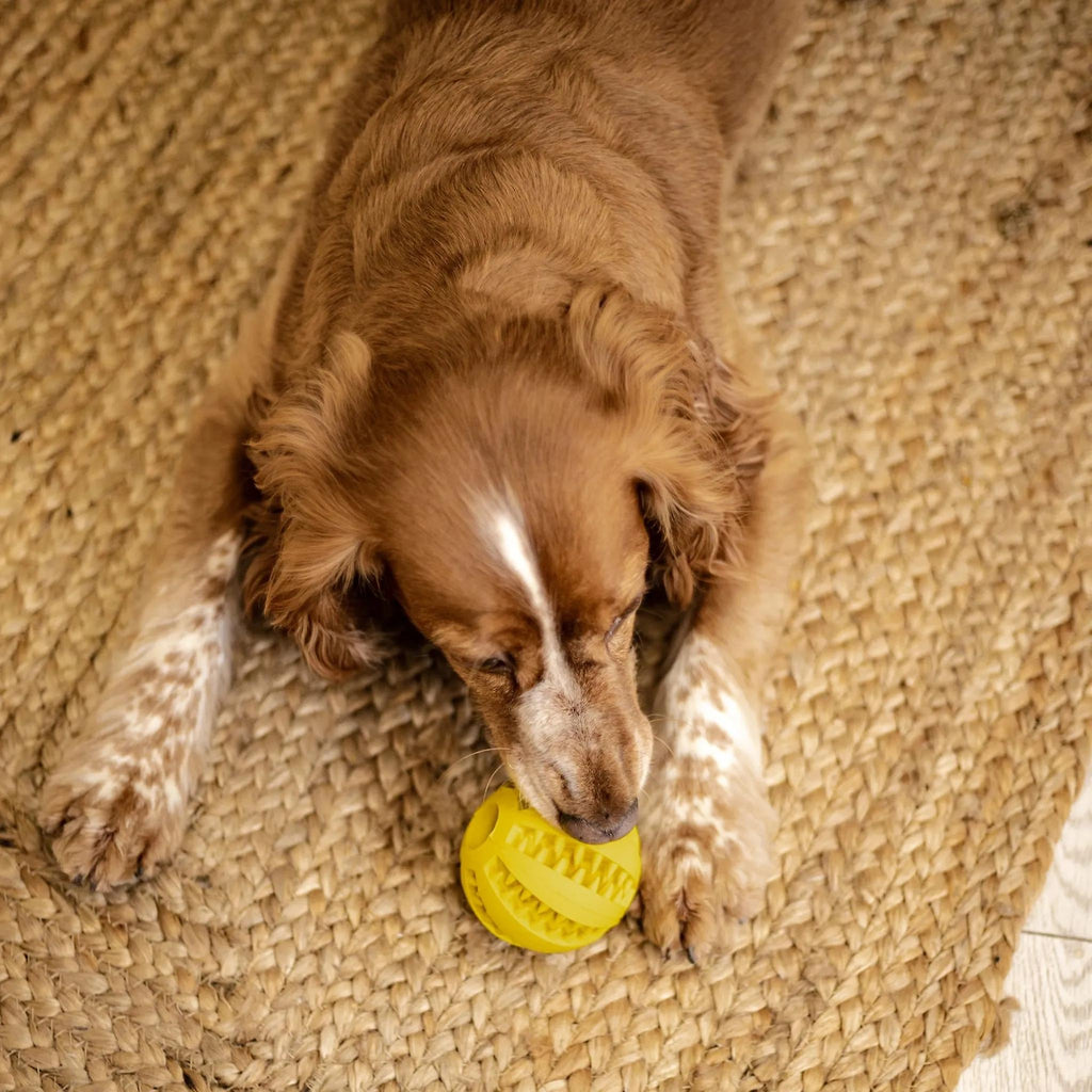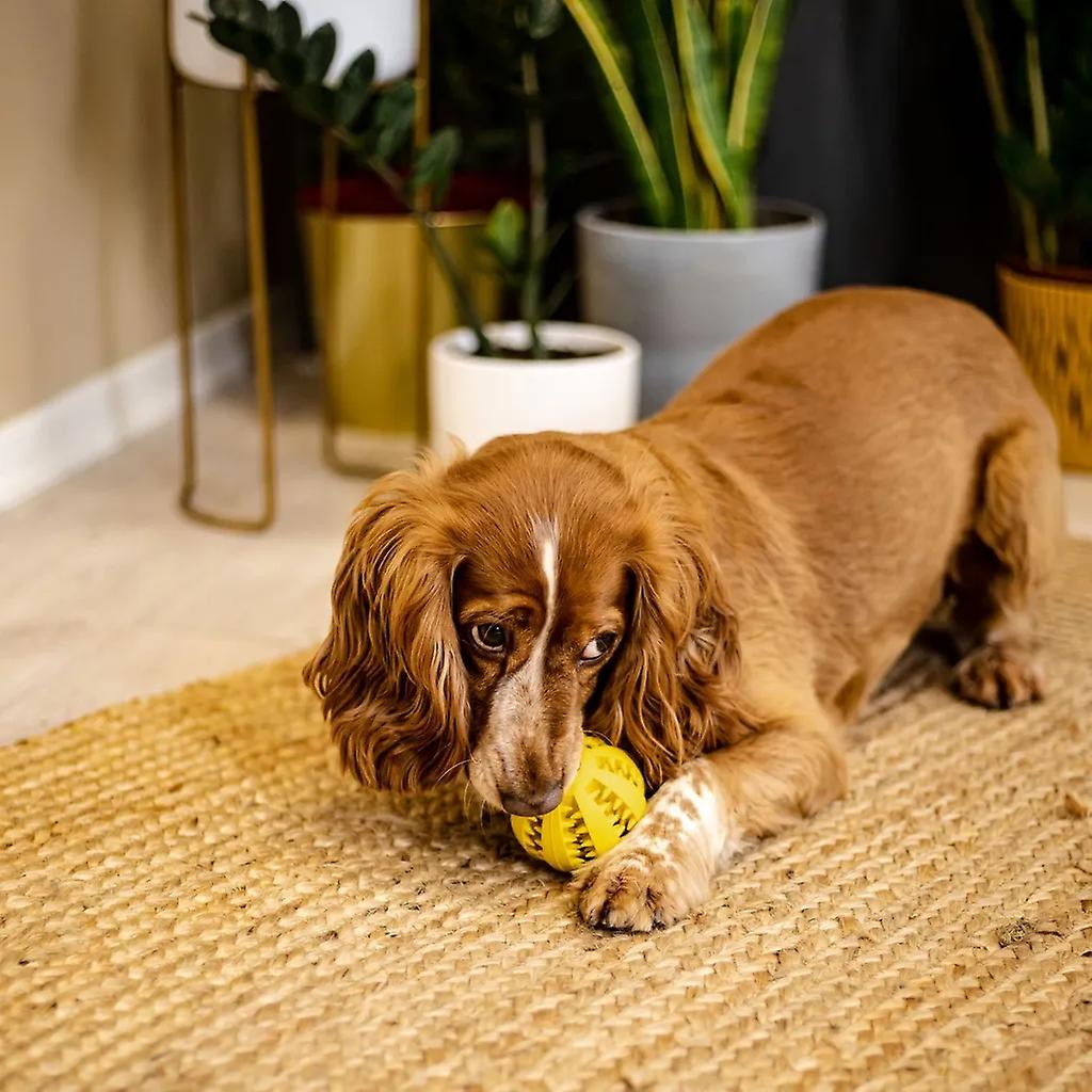 Safe and durable: The ball is made of non-toxic natural rubber material, has good elasticity, bite and puncture resistant. < p>The special arrangement of the nubs creates a natural toothbrush. By playing with the ball, teeth and spaces between teeth are perfectly cleaned and tartar and plaque don't stand a chance while at the same time providing natural gum massage and tooth enamel protection. The cavity inside the ball allows it to be filled with treats. In addition, the hole in the middle allows you to attach a rope, for example. The toy is therefore ideal against boredom. < span style="font-size: 1px;">The balls are multifunctional as fetch toys, chew toys, reward toys, IQ toys, snack toys. The ball can be used for indoor and outdoor play. A favorite toy for a dog: whether your pet is small, medium or large, the ball is suitable for pets of all sizes - even puppies Every dog owner knows that you can never have enough toys! designed the ball with your pet's development in mind. < br> The rubber ball with food dispenser allows you and your dog to have fun while practicing calm eating. With this toy Daily walks can be turned into training for retrieving or responding to commands. The ball is a fantastic way to To diversify the time you spend with your pet and thus build a unique bond with it. This ball will easily attract your pet's attention. < span style="font-size: 1px;"> Your pets will be the product of certainly accept. Thanks to the toy, they will be even more surprised while playing. Its compact size means you can literally take the ball anywhere, so you're always ready for the best fun with your pet. The ball is very flexible, so snacks can be easily and quickly placed in the ball and the inside of the ball is accessible later when cleaning.