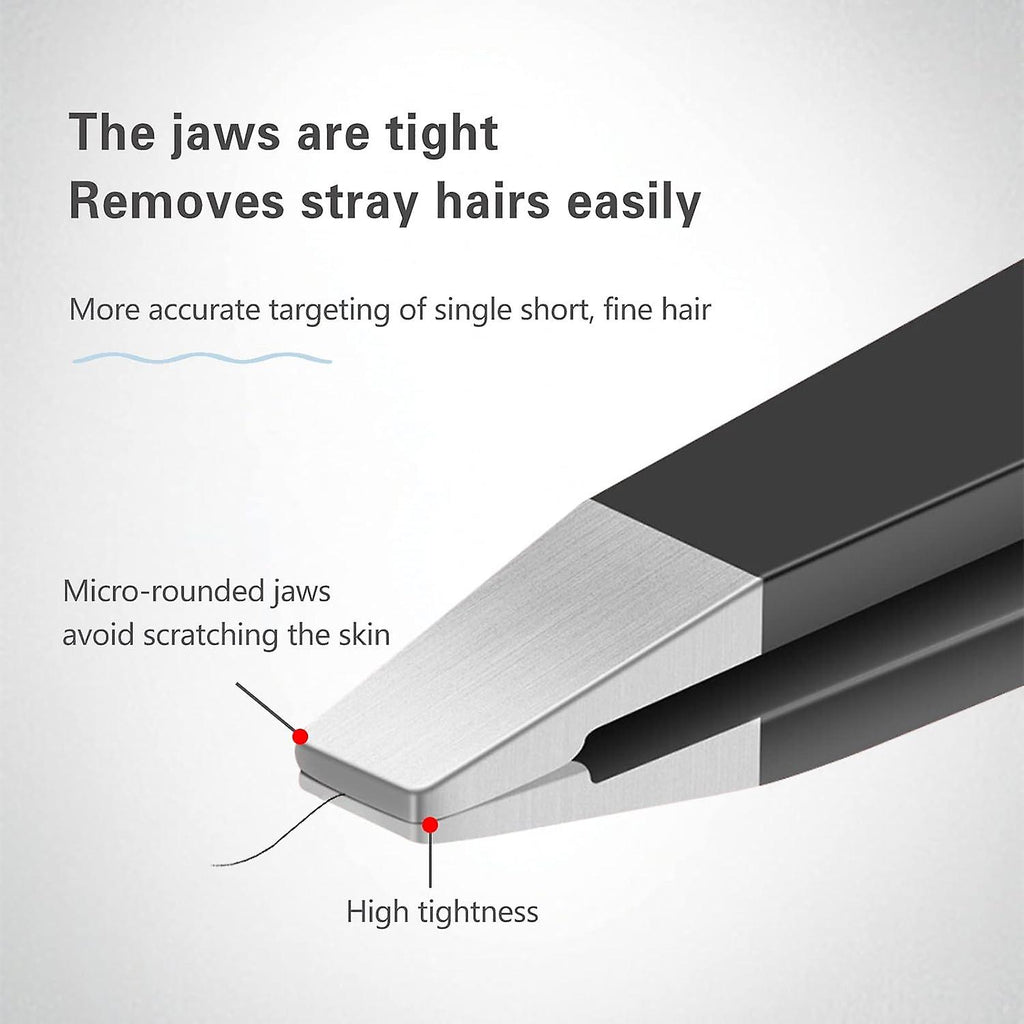 describe: [Multifunctional] The eyebrow tweezers set has flat, curved, curved and pointed tips that can remove hair from different parts of the body. It can also adapt to all types of thin hands and meet different needs. This is the perfect suit. [High precision]: Flush and sharp tweezer heads without gaps. Effortlessly removes small hairs and ingrown hairs. Works painlessly on eyebrows, facial hair, crumbs and all types of body hair. [High Quality]: This tweezer set is made of stainless steel with a non-slip coating. The pliers heads are perfectly aligned and your hands won't slip. Easy to clean. It can be used for a long time and is easy to carry. Make hair removal easy and fun and enjoy a better life. [Easy to use] The appearance of the tweezers is ergonomic and the grip is firm, allowing you to remove hair precisely and can be easily removed without damaging the skin. Perfect care will make you fall in love with this epilator. [Exquisite Gift]: This tweezers set is suitable for both women and men. It is an essential tool for daily beauty. It is a great gift idea for lovers, friends and family. Gifts bring your relationship closer.