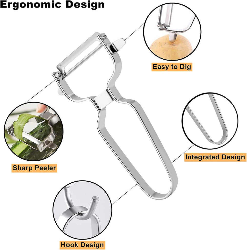 describe: [HIGH-QUALITY MATERIALS] - We made this vegetable peeler with high-quality blades and body made of food-grade stainless steel. Rustproof, durable, corrosion resistant [Sharp Peeler] - Jianyi ultra-sharp kitchen peeler is lightweight and sturdy, the built-in potato peeler easily removes skin blemishes and eyes from scratches. Agricultural products such as potatoes. It is a staple and a must have in your home and kitchen [DISHWASHER SAFE] - You can rinse the peeler with water or clean it in the dishwasher and then put it back to dry. ATTENTION: The vegan paring knife is very sharp; Handle with care, do not soak in water. Keep away from children and pets [Multifunctional] - This Y-shaped peeler can effectively peel various vegetables and fruits, including potatoes, apples, pears, carrots, cucumbers and more and segment. [Easy to Use] - The handle of the Jianyi potato peeler is designed with a wide handle that can be comfortably held in your hand regardless of your right or left hand can. Our fruit peeler features a slim, ergonomic handle that fits in the palm of your hand, providing complete control and excellent slip resistance when working