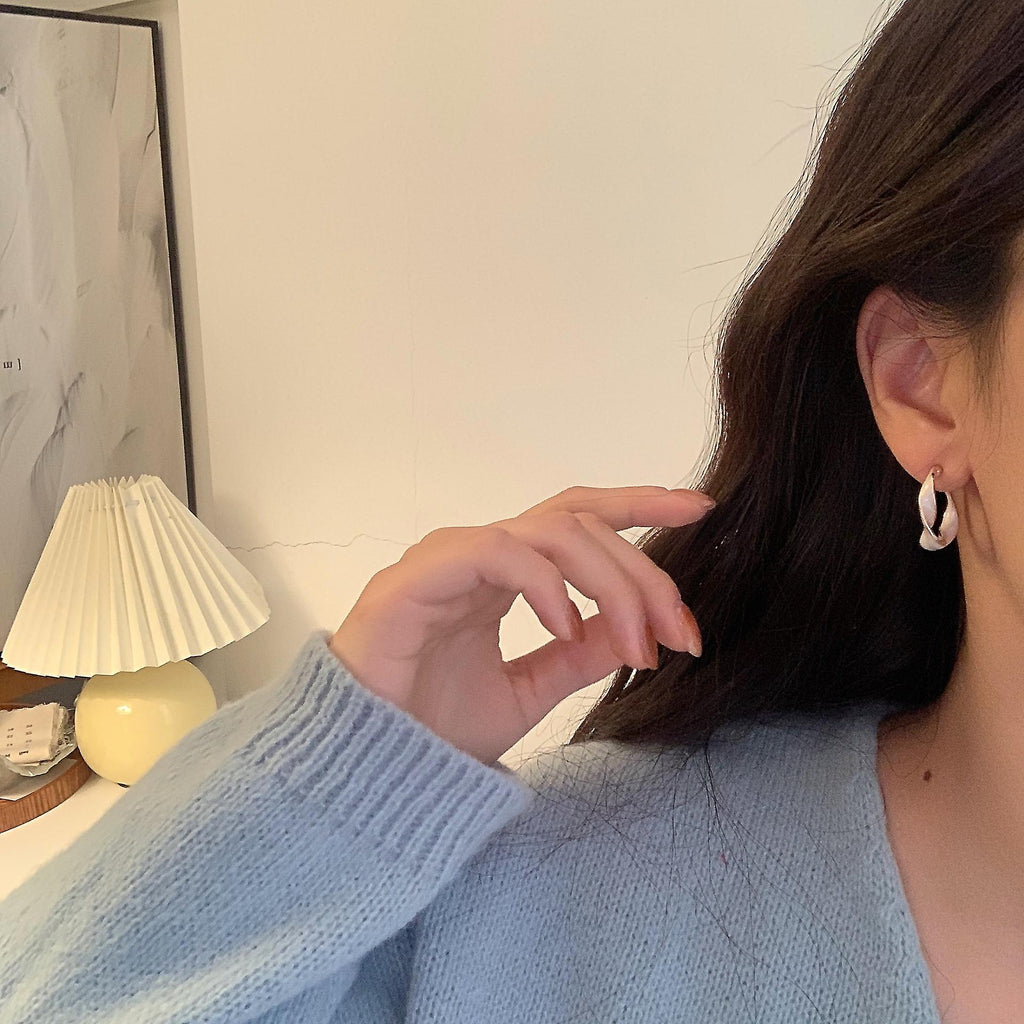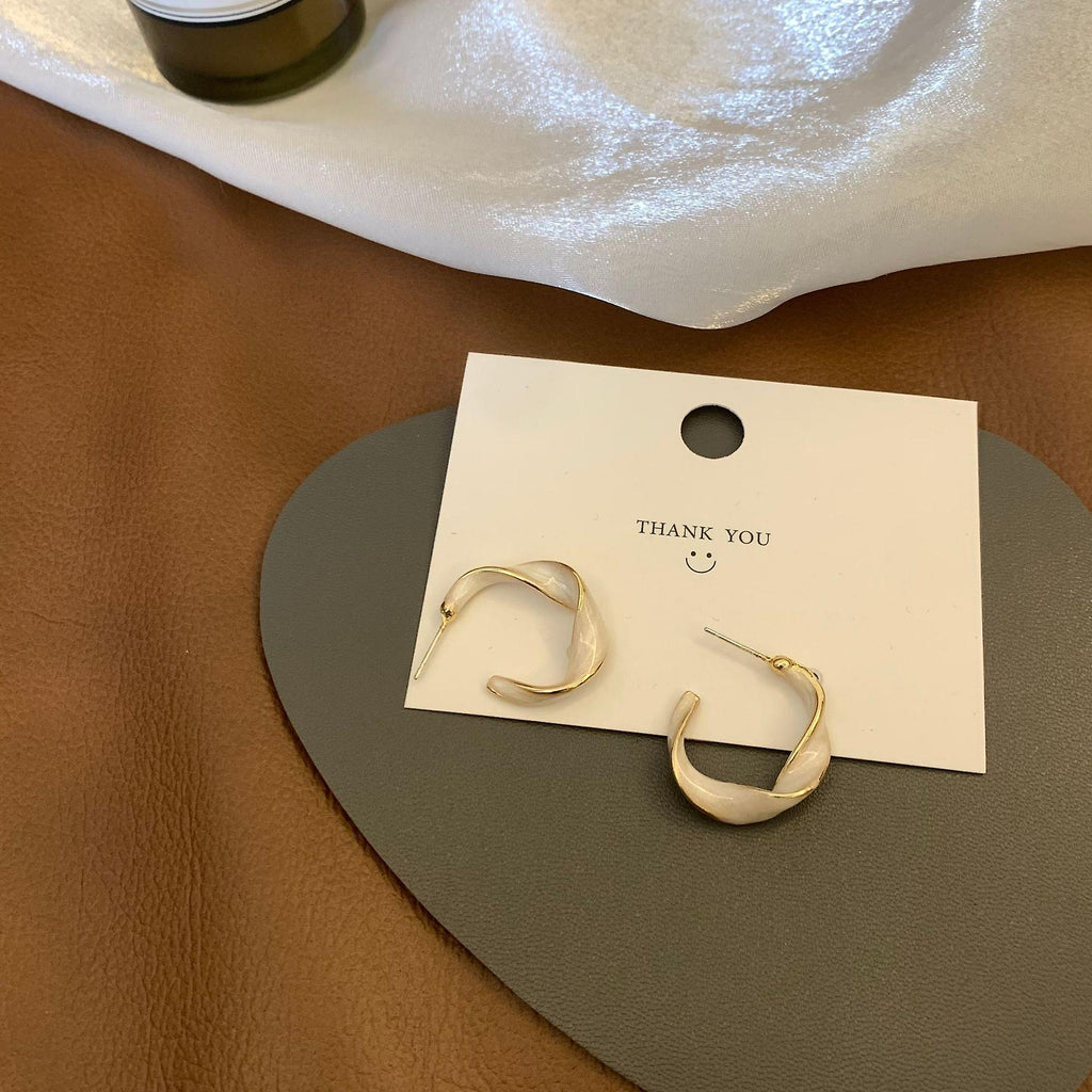 (white) S925 Silver Needle Drop Glaze Earrings Temperament Design Earrings Female Earrings