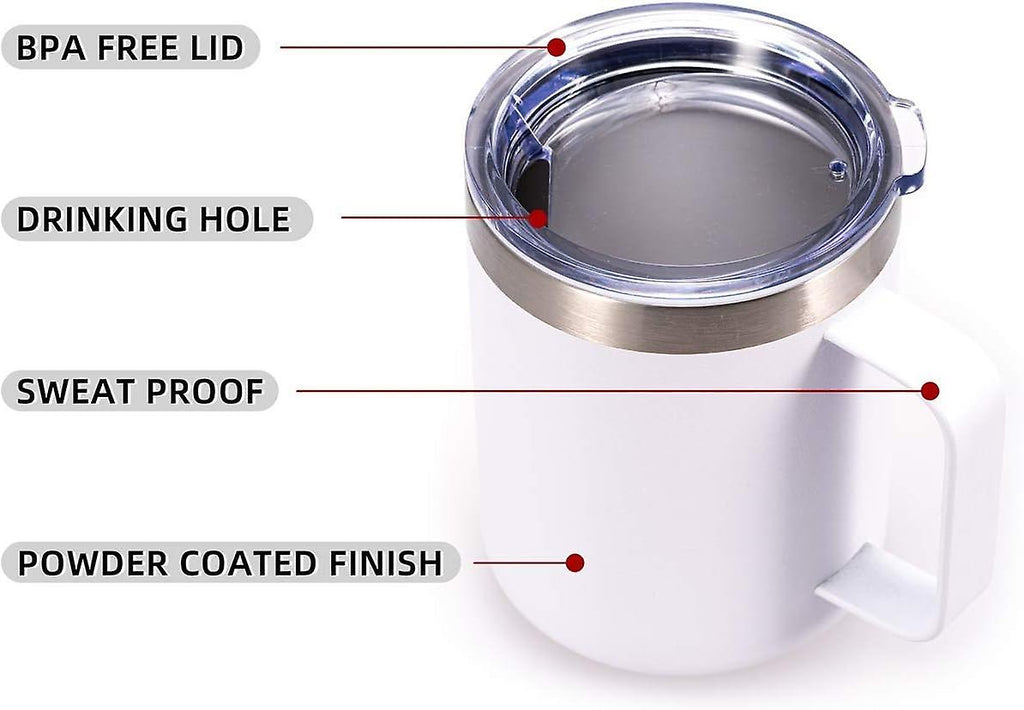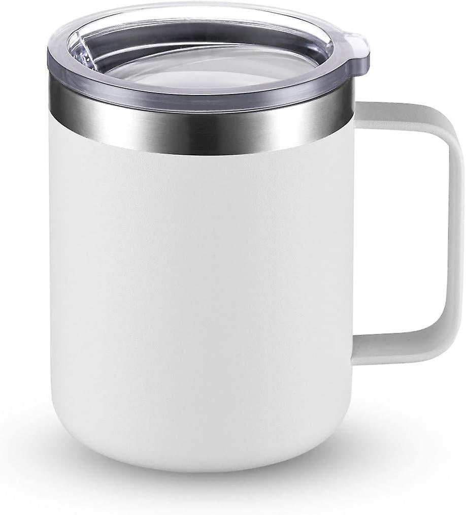 (White) Stainless Steel Coffee Mug With Lid And Handle, Double Vacuum Insulated Coffee Mug, Reusable Durable Travel Coffee Mug, Powder Coated, 1 Pack (white,