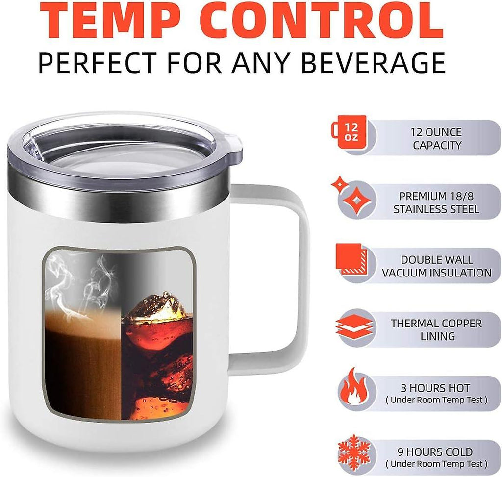 describe: Made from food-grade 18/8 stainless steel, the insulated mug features double vacuum insulation to maintain the temperature of your poured beverage, so your lemonade won't be so tastes like yesterday's coffee. Plus, this coffee mug is durable, shatterproof and super easy to clean. This coffee mug features a clear lid with a rubber seal to ensure a snug fit. It can help prevent wine or coffee from spilling if the party is in the backyard. The durable, clear lid makes it easy to see the rest of your drink. The wide and comfortable to hold non-slip handle helps you give your coffee cup a warm and loving hug, making drinking easier too. The travel coffee mug is powder coated for durability and easy access. Sweat-wicking design keeps fingers dry and prevents frostbite. If you are a coffee lover and want to drink more hot beverage every day, the coffee mug with lid will meet your expectations and will not produce steam. If you're a cold beer lover, your hands will never be cold. This lightweight, stylish mug holds up to 12 ounces of coffee or tea and keeps it hot for hours, making it also perfect for your favorite cold beer, your favorite juice or your favorite cocktail. Good insulation and a high-quality, modern design make this travel coffee mug an essential accessory for the whole family, perfect for outdoor parties or just cozy evenings at home.