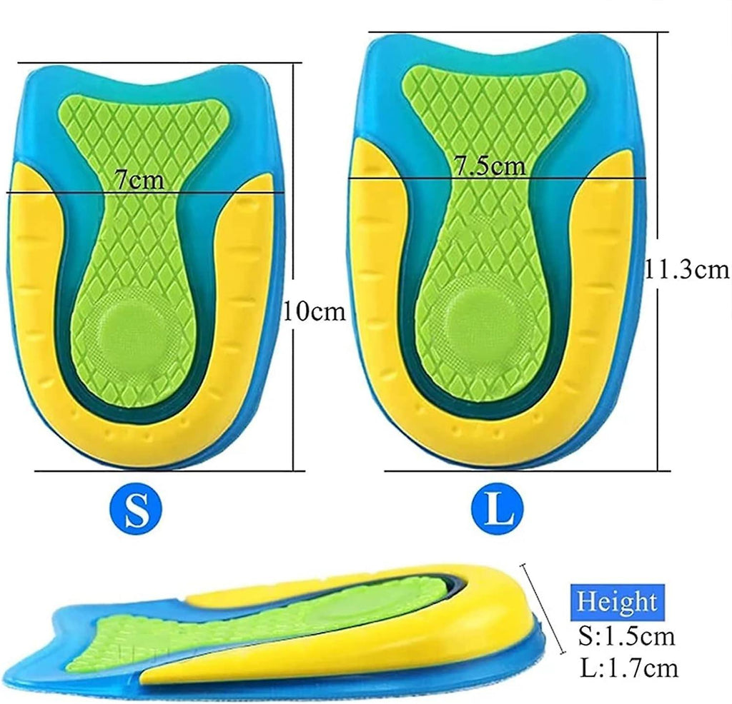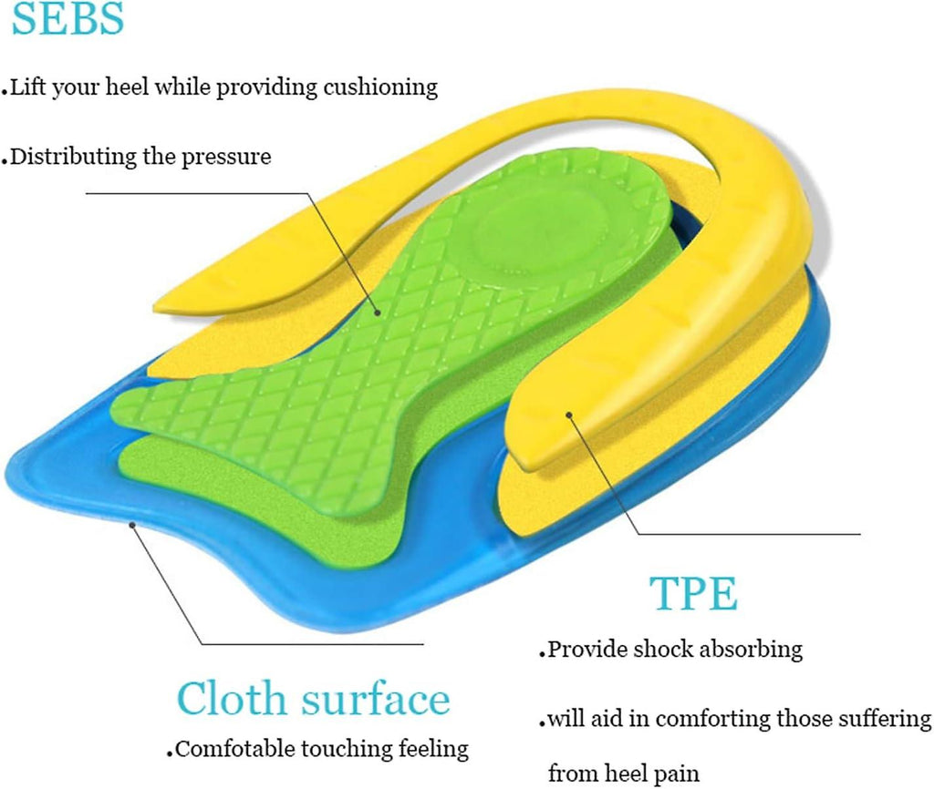 Shock Absorption: These gel heel cups provide powerful heel and ankle support. Protect your feet by absorbing shock, reducing tension and pressure with every step and providing a soft sensation for heel spurs, bone spurs and plantar fasciitis while restoring a comfortable fit with these orthopedic gel heels. Fits all shoes: These comfortable neutral gel heels can be worn in most shoe styles that hit your joints and relieve pressure on your sensitive heels, including sneakers, dress shoes and boots, perfect for nurses, hotel workers, runners, dancers and athletes. Comfortable to wear: The heel provides special flexible support in the middle of the heel to prevent heel strikes and distribute even pressure for an all-round comfortable feel. Gain a few inches with these increasing and growing high heels. Easy to clean: The high quality gel can be easily cleaned with soapy water, eliminates odors and preserves your gel heel pads for a long time. The insoles can be easily hand washed with a mild detergent. For long-term use: The high-quality latex-free insoles have antibacterial properties that eliminate accumulated odors during long use, relieve joints and soothe sensitive heels, which they ideal for people who stand and walk for long periods of time.