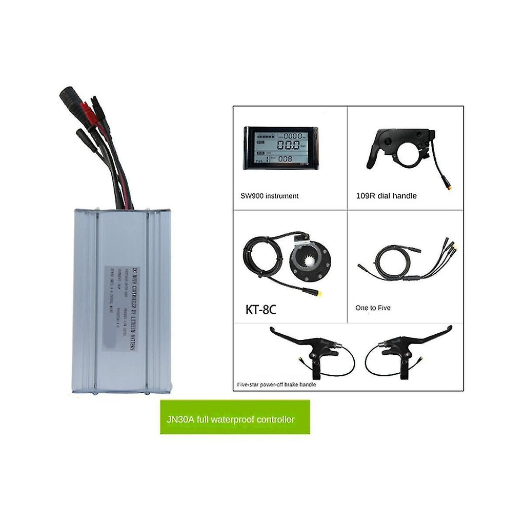 JD30A fully waterproof controller. Controller kit for1000W motors. And suitable for DIY electric bicycles, electric cars, electric , folding cars, etc. The bicycle lithium battery conversion kit greatly enhances the driving pleasure and is suitable for bicycle enthusiasts. Packing list: Bicycle lithium battery conversion kit includes 30A controller, SW900 meter, 109R thumb throttle, KT-8C boost sensor, one drag five wires + a pair of brake levers with power off Great features: While driving, the product displays a lot of useful data about the bike, such as the on/off button, light switch, battery level indicator and other features. The instrument has a display. Excellent performance: The SW900 meter is made of high-quality ABS material, which is light, strong, well-crafted, tough, and waterproof, providing excellent protection for the internal circuit. Good heat dissipation: the controller shell is made of high-quality aluminum alloy, with a concave design, and good heat dissipation protects the internal circuit from the influence of heat load. Color: Black & Silver Material: metal+plastic Package Contents: 1 x controller 1 x instrument 1 x finger handle 1 x boost sensor 1 x one drag five wires 1 pair off brake lever Only the above package content, other products are not included. Note: Light reflection and different displays may cause the color of the item in the picture a little different from the real thing. The measurement allowed error is +/- 1-3cm.