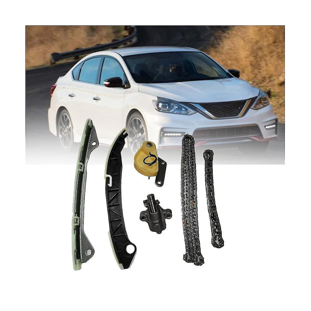 Timing Chain Kit Fits 12-13 Juke 13-17 Sentra 1.6L L4 DOHC. This timing chain kit is just what you need to keep your car in good running order. The kit that you will receive is a high timing chain kit that the dealers and rebuilding shops use everyday. So do not settle for lesser parts when it comes to engine repair. These timing chain kits are designed for the professional installer. This Timing Chain Kit is expertly made in compliance with stringent industry standards to offer a of a -balanced design and high level of craftsmanship. Manufactured from industry-leading materials using up-to-date equipment, it ensures everlasting reliability and enduring value. Keep your engine's valvetrain in perfect time with timing chain kit. No matter whether you need a timing gear or complete timing gear set, Designed with innovative manufacturing techniques Maintains critical valvetrain and balance shaft timing. Expertly made from premium materials Prevents performance problems and possible engine damage that can from incorrect timing. Application- design for a Type: Engine Timing Chain Kits Fitment Type: Direct Replacement Install Condition: 100% New Part Number:13028-1KC0A, 13070-EN20A, 13085-1KC0A, 13091-1KC0A, 13025-4BB0A, 13025-4BB0C, 13070-1KC8A, 13021-CK83A Superseded Part Number:130701KC8A 130281KC1A Fitment : For New Tiida MR16DT 1.6 2012-2018 2012-2013 For JUKE 1.6L 1598CC 98CID L4 DOHC TURBOCHARGED (16 VALVE), . CODE "MR16DDT" 2012-2013 For JUKE 1.6L 1618CC L4 DOHC TURBOCHARGED (16 VALVE), . CODE "MR16DDT" 2017 For SENTRA 1.6L 1618CC L4 DOHC TURBOCHARGED (16 VALVE), . CODE "MR16DDT" 2017 For SENTRA 1.8L 1798CC 110CID L4 (16 VALVE), . CODE "MRA8DE" 2013-2017 For SENTRA 1.8L 1798CC 110CID L4 DOHC (16 VALVE), . CODE "MRA8DE" 2013-2014 For SENTRA 1.8L 1800CC 110CID L4 DOHC color:As shown Material:metal+plastic Package Contents: 2 x Timing Chain (162 link) 1 x Tensioner (for timing chain) 1 x Guide Rail (lower fixed) 1 x Guide Rail (tensioner side) 1 x Oil Pump Chain Tensioner Only the above package content, other are not included. Note: Light reflection and different displays may cause the color of the item in the a little different from the real thing. The measurement allowed error is +/- 1-3cm.