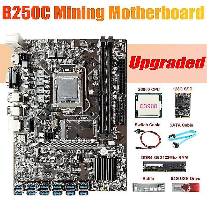 B250c Eth Mboard 12usb+g3900 Cpu+ddr4 4gb 213hz Ram+128g Ssd+64g Usb Drive+sata Cable+s
