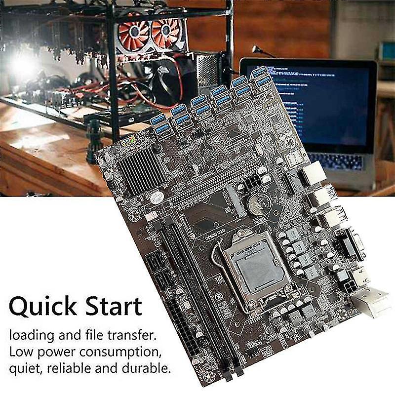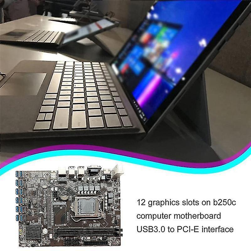 Processor: Supports all processors of the LGA1151 series Chipset: using for B250 high-speed chipset Memory: 2*DDR4 DIMM memory slot, support 2133/2400MHZ memory, maximum support 16GB Display chip: integrated for HD Graphics core Display output: -compatible/12*USB3.0 to PCI-E16X Storage: 4*SATA interface,1*MSATA interface I/O interface: 2*USB3.0 interface; 2*USB2.0 interface; 1*-compatible interface; 1*PS/2 interface,1*VGA interface Built-in I/O interface: 1*USB2.0 pin; 1* pin; 1*F-PANEL front panel function button and indicator plug Needle BIOS: 64mb Flash ROM Power supply type: support ATX24P+ATX4P, 12V+ATX6P The appearance and color of different batches of products may be different, which will not affect the use Ps: 1. N card: refers to the graphics card product developed by for company. 2. A card: refers to the graphics card product developed by for AMD company. Note: since the windows driver can only support 8 cards at most, the mining combination of 12 cards is generally (6N + 6A (8N + 4A, 8A + 4N) (7N + 5A, 7A + 5N) Note: Random color, 't accept the specified color. size: 230 x 185mm Material: PCB colour: black Package Contents: 1 x Motherboard 1 x G3900 CPU 1 x DDR4 4GB 2133Mhz RAM(Random colors and appearances) 1 x 128G MSATA SSD(Random colors and appearances) 1 x 64G USB Drive(Random colors and appearances) 1 x SATA Cable(Random colors and appearances) 1 x Switch Cable(Random Color) 1 x Baffle(Random colors and appearances) Only the above package content, other products are not included. Note: Light reflection and different displays may cause the color of the item in the a little different from the real thing. The measurement allowed error is +/- 1-3cm.