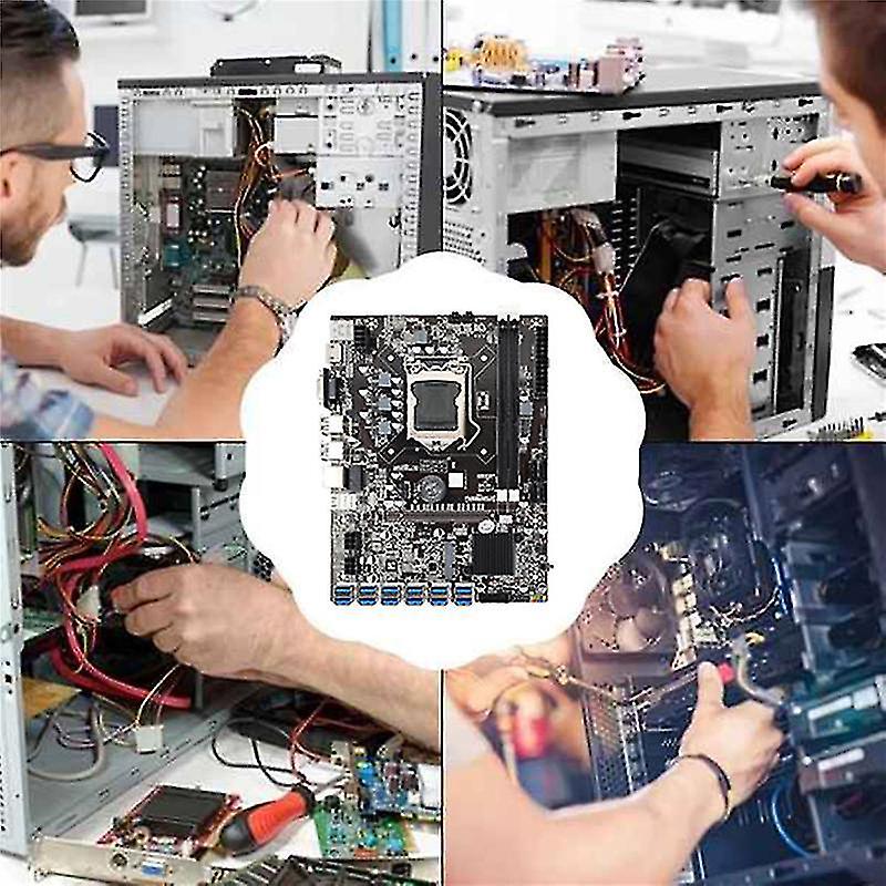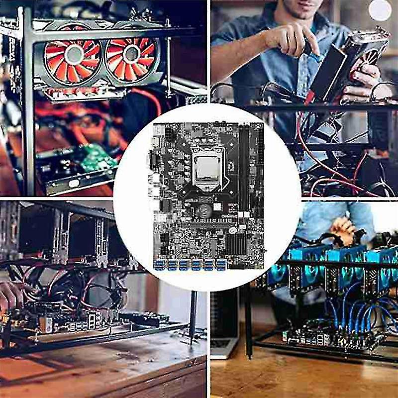 The B75 USB-BTC motherboard uses all-solid capacitors to make the motherboard more stable; it supports LGA1155 CPU and uses the B75 chipset to give full play to the CPU performance; the motherboard is suitable for the mining industry due to low and expansion interfaces. (1) Display interface: 1xHDMI-compatible, 1xVGA(2) USB rear: 2xUSB2.0 (3) USB front: 1xUSB2.0(4) USB rear: 2xUSB3.0 (5) USB front: 1xUSB3.0(6) interface: 4xSATA (7) Graphics interface: 12xPCIE1X (USB )(8) Network card interface: 1xLAN 100M network card (9) Memory slot: 2xDDR3 (10) CPU socket: LGA (1155) (11) Chipset: BGA (B75) (12) interface: 1xMSATA (13) BIOS initial restoration: JCMOS (14) Speaker interface: 1SPK (15) Power interface: 24pin_ATXPWR (16) Power interface: 4pin_ATX12V CPU type: Support For 1155 CPU socket: LGA_1155 The appearance and color of different batches of products may be different, which will not affect the use Colour:black Material: PCB Size:23 x 18CM Package Contents: 1 x Motherboard 1 x G860 CPU(Note: The CPU is a giveaway, not covered under , not included in the entire order , ' place an order if you mind, .) 1 x 4PIN IDE to SATA Cable(the appearance and color are random, ' accept the specified ) 1 x SATA Cable(the appearance and color are random, ' accept the specified ) 1 x Switch Cable (random colors, ' accept the specified color) 1 x Baffle(the appearance and color are random, ' accept the specified ) 1 x Thermal Grease(the appearance and color are random, ' accept the specified ) Only the above package content, other products are not included. Note: Light reflection and different displays may cause the color of the item in the a little different from the real thing. The measurement allowed error is +/- 1-3cm.