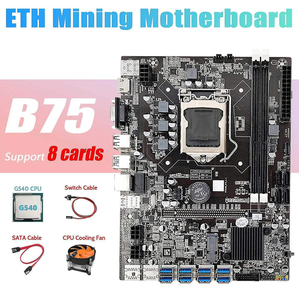 B75 Eth Mboard+g540 Cpu+fan+sata Cable+s Cable A1155 8xpcie Usb Adapter Msata Dd