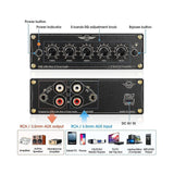 Features: 5-band EQ preamplifier: adopt 5PCS JRC4558 op amp, each one is responsible for one frequency band and process the audio signal independently. 5-band separate control knob, to control and set the freqency range as you like. Bypass design suits more use: with bypass button to turn off EQ preamplification, the audio signal will output from IN to OUT directly without any processing, convenient to enjoy sound. Attractive looking and powerful design: case and PCB panel, knurled knob, all I/O interfaces are gold-plated to the tight connection and transmission of the audio signal and minimizes the loss of the signal. Mini size and powered by DC 5V: compact design easy to carry, convenient to use in most scenarios, no need to bring a separate power supply, very suitable for of most users. Paramters: Audio input: stereo RCA / 3.5mm AUX Audio output: stereo RCA / 3.5mm AUX Input impedance: 50K Output impedance: 47 Frequency response: 5Hz-154kHz : 0.003%@1KHz EQ Bands: 100Hz, 400Hz, 800Hz, 4KHz, 10KHz Bypass function: support Working voltage: DC 5V (500mA) Power interface: USB (type-C) Material: Plastic + metal colour: As shown Package Contents: 1 x EQ5 Preamp 1 x USB Cable (type-C) 4 x mats Only the above package content, other products are not included. Note: Light reflection and different displays may cause the color of the item in the picture a little different from the real thing. The measurement allowed error is +/- 1-3cm.