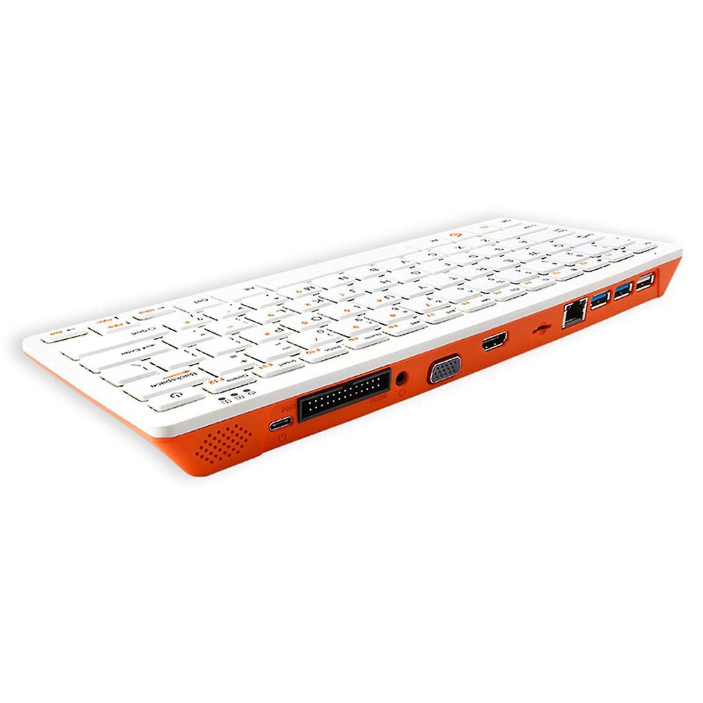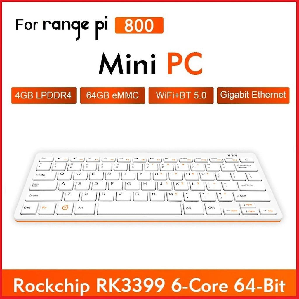 1,for Orange Pi 800 is a powerful, easy-to-use mini PC in a key-board. 2,It uses the Rockchip RK3399 SoC,and has 6-core ARMB 64-bit processor ,4GB LPDDR4, -band (2 .4GHz and 5.0GHz) wireless WiFi, Bluetooth 5.0, Gigabit Ethernet, 4K HD video output, 2*USB 3.0 and 1* USB 2.0 ports. 3,for Orange Pi 800 offers a range of different ports .You can insert TF card,display screens and other devices. 26 Pin interface is reserved on the keyboard, which is convenient for users to complete some basic experimental projects. 4,for Orange Pi 800 delivers outstanding development performance that you can use to start taking control of the world around you. 5,It is also an educational tool for students of all ages. Product name: for Orange pi 800 keyboard CPU:Rockchip RK3399(28nm HKMG process) 6-core ARM 64-bit processor Based on the and small size core architecture of big LITTLE,-core Cortex-a72 up to 1.8GHZ ( core ) +Quad-core Cortex-a53 up to 1.4GHZ ( small core ) GPU:ARM Mali-T860MP4 Memory ( SDRAM ):4GB LPDDR4 (shared with GPU) Onboard Storage:Microsd card,64GB EMMC Flash Onboard Network:YT8531C , 10M/100M/1000M Ethernet RJ45 Onboard Wifi + BT:on-board module (CDW-20U5622) 2.4GHz/5GHz band wifi,supporting IEEE802.11 /g/ac protocol bluetooth5.0, supporting BLE Video Outputs:-compatible 2.0,VGA Audio Output:-compatible output,Analog audio,Onboard speaker Audio Input:Microphone,On-board analog audio input Keyboard:78keys QWERTY Keyboard USB:2*USB3.0;1*USB2.0 Source:Type-c 5V 4A 26pin Expansion Port:Support IIC, SPI, UART, PWM, GPIO and other func-tions LED:, Caps Lock and Numlk indicator Supported OS:Android12.1,OrangePI OS, Manjaro, Ubuntu22.04 Debian11 Product Size:122 x 286 x 24 mm Material: ABS colour: White Package Contents: 1 x for Orange pi 800 keyboard Only the above package content, other products are not included. Note: Light reflection and different displays may cause the color of the item in the picture a little different from the real thing. The measurement allowed error is +/- 1-3cm.