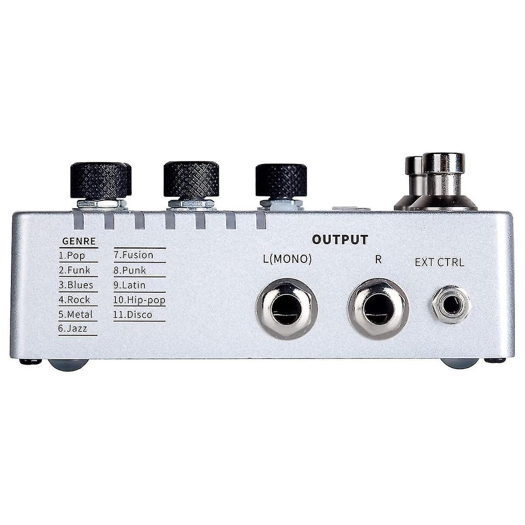The Groove Loop X2 to as the ultimate looper and drum machine combo pedal whether in the practice room or . Groove Loop X2 looper features a whopping 14 save slots that can store of up to 10 minutes in length in each slot. 121 different drum grooves encompassing 11 unique musical styles built in a metal shell. Looper controls are familiar and flexible with the ability to toggle count-in mode on/off and an automatic mode that detects and begins the looper once an instrument signal is detected. Easy to use with TIME STRETCH function allows users to change the speed of playback without affecting the pitch. Audio playback and drum machine audio can be separated into two different outputs Groove Loop X2 packs in a huge of drum grooves separated by 11 different genres, each with 11 different variations that can be easily with the included GENRE and PATTERN knobs. Drum machine tempo can be set manually by Tap Tempo or when used in combination with the Looper, tempo will be automatically detected while playing. Groove Loop X2 edition of the Groove Loop also adds many requested features such as split stereo inputs and outputs. Looper and Drum machine can also be split to two different outputs for added flexibility Audio playback and drum machine audio can be separated into two different outputs. Three different recording mode: Count-in mode. automatic mode and normal mode. Colour:silver Material:Metal Package Contents: 1 x Guitar Looper Effect Only the above package content, other products are not included. Note: Light reflection and different displays may cause the color of the item in the picture a little different from the real thing. The measurement allowed error is +/- 1-3cm.