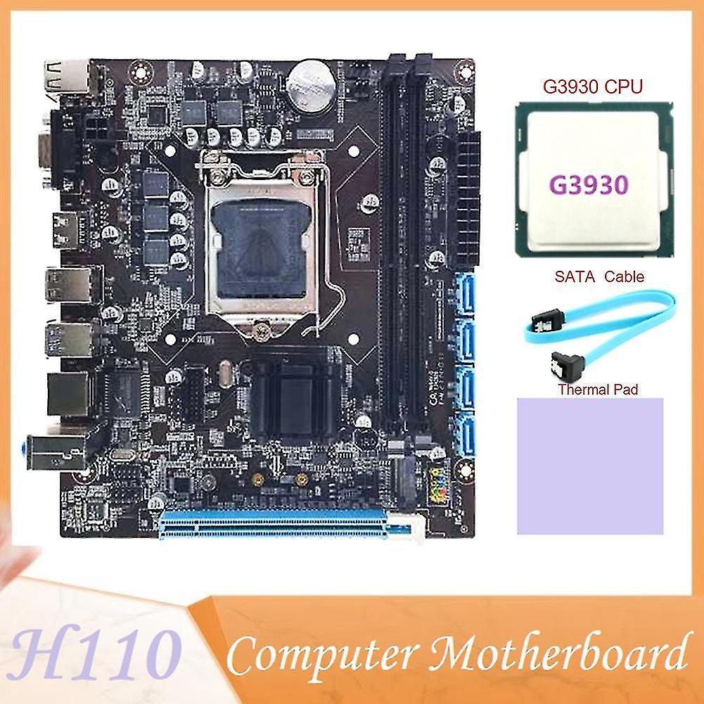 Support LGA1151 i3, i5, i7 series processors, enjoy the latest display performance.Provides 2 DDR4 dual-channel slots to support DDR4 memory.Fast startup, loading and file . Low power consumption, silent, and durable.Made of high-quality materials, durable, long service life, and stable in use.Small and light: This product is small in size, light in weight, does not take up space, and is easy to carry.CPU: LGA1151 SocketSupport CPU: For LGA1151 6/7/8th 14nm CPU, such as G3900 G3930 G4400 G4560 CPU.Memory slots: 2 x DDR4 RAM slotsSupport maximum memory: 2 x 16G DDR4, of 32G,Support 2133.2400.2666MhzSupported memory types: 240Pin DDR4 Desktop Memory RAMGraphics card standard: PCI 16XNetwork card:Gigabit LANExpansion slot:1 x M.2 NVME slot1 x PCI-E X16 slot4 x SATAI/O:4 x USB2.0 interface1 x VGA interface1 x -compatible interface2 x USB3.0 interface1 x RJ45 Gigabit LAN1 x Audio interfaceThe appearance and color of different batches of products may be different, which will not affect the useColor:blackMaterial:PCBSize:19 x 17cmPackage Contents:1 x Motherboard1 x G3930 CPU1 x SATA Cable(Appearance And Color Random, Do not accept designation)1 x Thermal Pad(Appearance And Color Random, Do not accept designation)Only the above package content, other products are not included.Note: Light reflection and different displays may cause the color of the item in the a little different from the real thing. The measurement allowed error is +/- 1-3cm.
