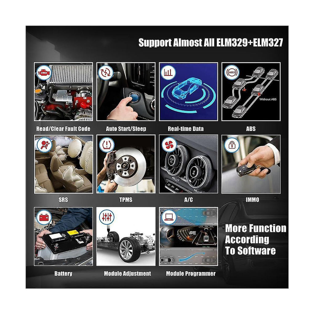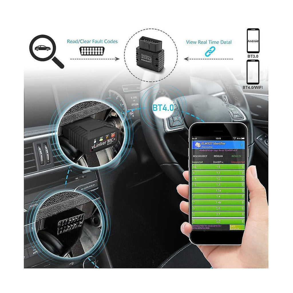 1. Data buffer up to 2K bytes, UART baud rate increased to 230. 4 Kbpsc 2. Support Almost All /ELM329 Adapter Software 3. Automatic sleep and start to reduce power consumptione 4. OBD2 Standard Protocols+More protocols 5. Support user-defined commands If your mobile phone is IOS, when you use BT4.0 Ver., please connect to BT directly in the software,'t connect to BT in phone settings.If you are using BT version on Android, you need to press the switch first, and then search for BT: -Android 100% BT4.0/WIFI: compatible with 99%+ world car models Request bytes up to 48 bytes Support Firmware Update Support user-defined APP Support GMLAN and /-CAN (for /) 15 protocols/23 protocols/64 User-defined protocol Colour:Black Material:ABS Package Contents: 1 x Car Diagnostic Only the above package content, other products are not included. Note: Light reflection and different displays may cause the color of the item in the picture a little different from the real thing. The measurement allowed error is +/- 1-3cm.