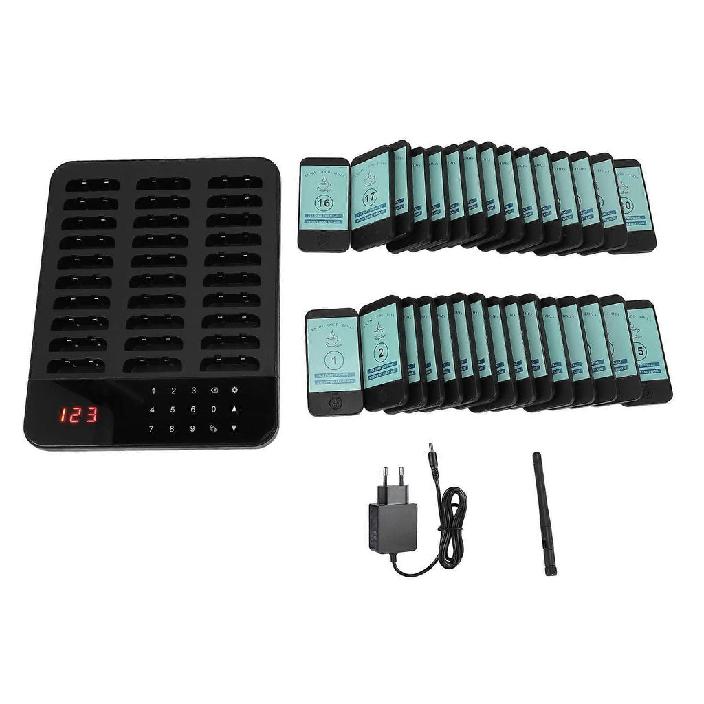 1 to 30 Wireless Calling System Vibration Buzzer Flash Guest Waiting Pager for Restaurant 500M Distance 1?999s Setting EU Plug
