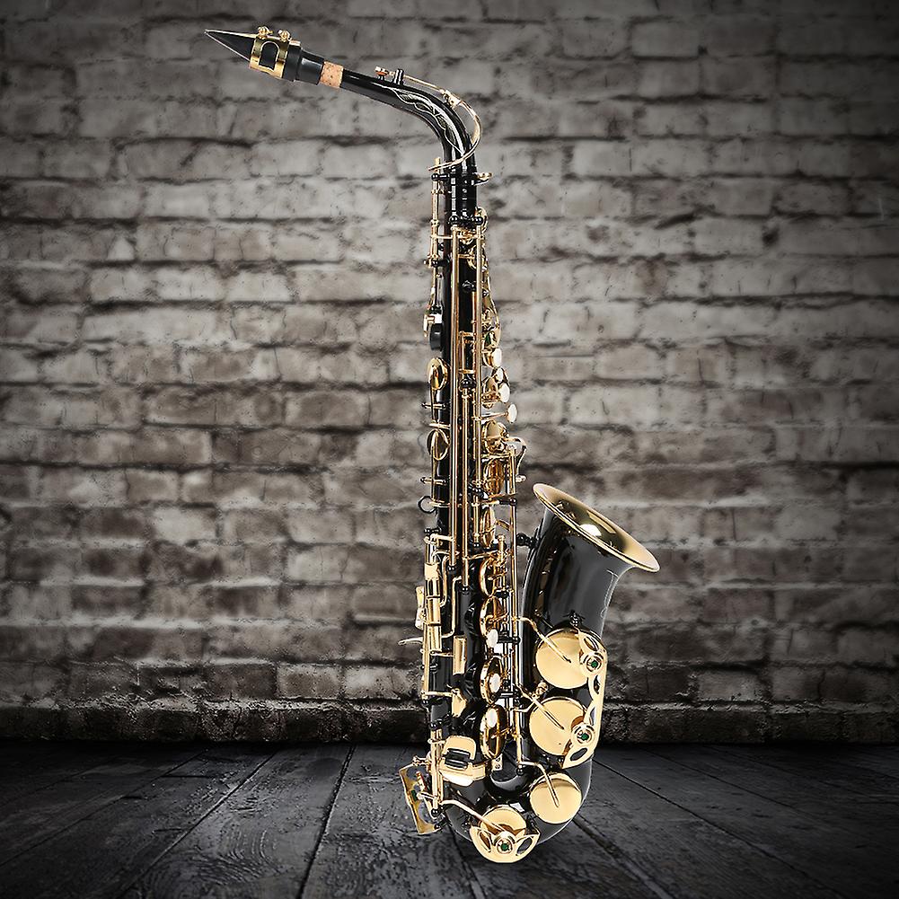 Feature: 1. Black lacquered gold key, made with modern technology with black enamel. 2. Add varnish transparent color, while ensuring the durability of the paint surface, no fading, no oxidation. 3. The bell mouth is made of gold-colored bright mouth, beautiful and elegant, and the key adopts electrophoresis gold technology. 4. Key button, comfortable with white shell, baked blue spring needle, excellent hand feeling. 5. This is a E flat alto saxophone made of brass. Specification: Item Type:E Flat Alto Saxophone Material:Brass Surface Treatment:Electrophoresis Gold. Package List: 1 x Combined Saxophone(Mouth and Main Body)3 x Strap(2 Sizes)2 x White Gloves1 x Cleaning Cloth1 x Cleaning Tube Brush1 x Saxophone Flute1 x Flute Cap1 x Box