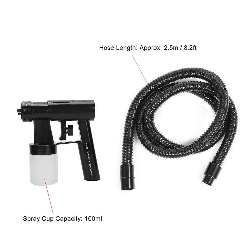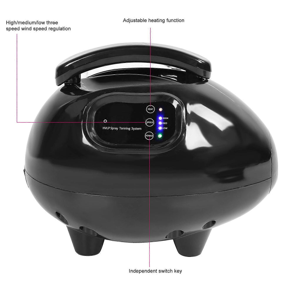 Feature: 1. Warm air independently turns on. Warm air makes drying time faster, convenient to use. 2. Cute handle design portable and lovely appearance, can adjust the wind speed. 3. The improved model has a reliable fine mist spray pattern, HVLP spray gun, easy cleaning, removable spray applicator. 4. Adjustable sprayer with flowing control knob, meeting your different demands. 5. Adopt 0.5mm spray nozzles, 3 kinds of adjustable spray patterns, round buttons are suitable for small areas such as arms or face, spray vertically up and down, spray horizontally, make sure the color is uniform. Specification: Condition: Item Type: Tan Spray Machine Material: ABS Power: 700W Spray Cup Capacity: 100ml Hose Length: Approx. 2.5m / 8.2ft Remote Control Battery: 1pc CR2025 button battery (not included) Features: You can spray paint olive or bronzed skin You can spray paint at home without going to the beach and save yourself from the high cost of salon. Package List: 1 x Host 1 x Air Duct 1 x Sprayer 1 x Remote Control 1 x Power Cord 1 x Manual