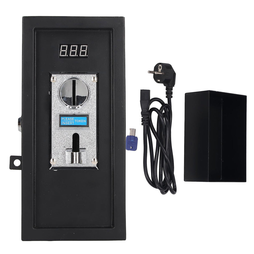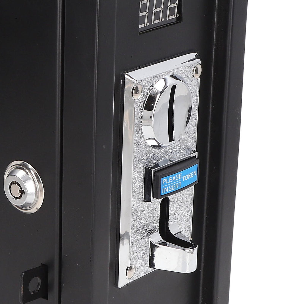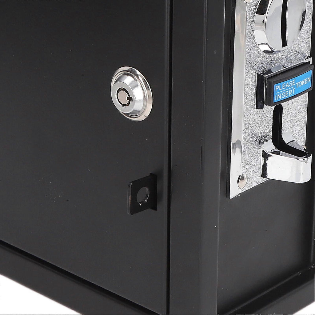 Feature: 1. Operation Mode: After the coin is inserted, the display screen displays the remaining time and supplies power to the equipment. When the time is up, stop supplying power to the equipment. 2. Accumulated Time: Each coin input increases the corresponding time. When available time runs out, system locks automatically, until start up with next coin deposit. 1 key is included for locking coin tray. 3. Time Control: This is used to control the time of your electronic device. You can insert coins and decide the price and the time that you would like your device to run. 4. Wide Application: Coin operated timer control box can be used in a lot of public places: gaming machines, massage chairs, washing machine, shoe polishers, chargers, and PCs. 5. Up to 10A Device: This timer control box is designed for up to 10A electronic devices (Not suitable for clothes dryer, gas type clothes dryer). Specification: Item Type: Coin Timer Control Box Material: Hardware Weight: Approx. 4237g/149.46oz Size: 26x13x28cm/10.24x5.12x11.02in Maximum Load: 10A Applicable Equipment: Washing machine, massage chair, air duct and other equipment less than 10A (Not applicable to clothes dryer and gas type clothes dryer) Operation Mode: After the coin is inserted, the display screen displays the remaining time and supplies power to the equipment. When the time is up, the power supply to the equipment is stopped.. Package List: 1 x Coin Timer Control Box1 x Key1 x Plug