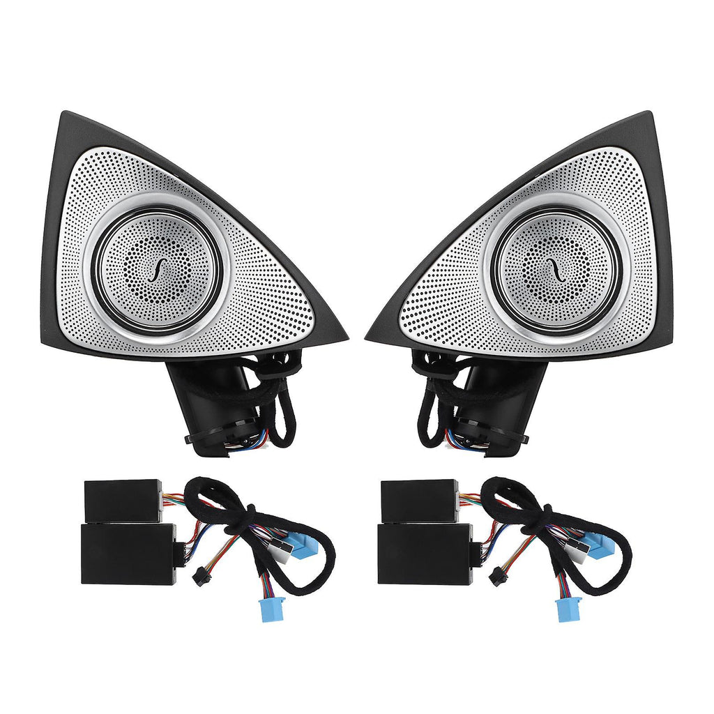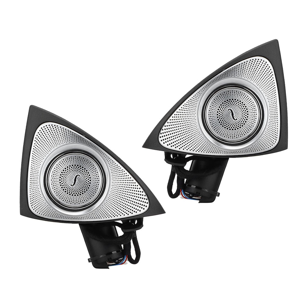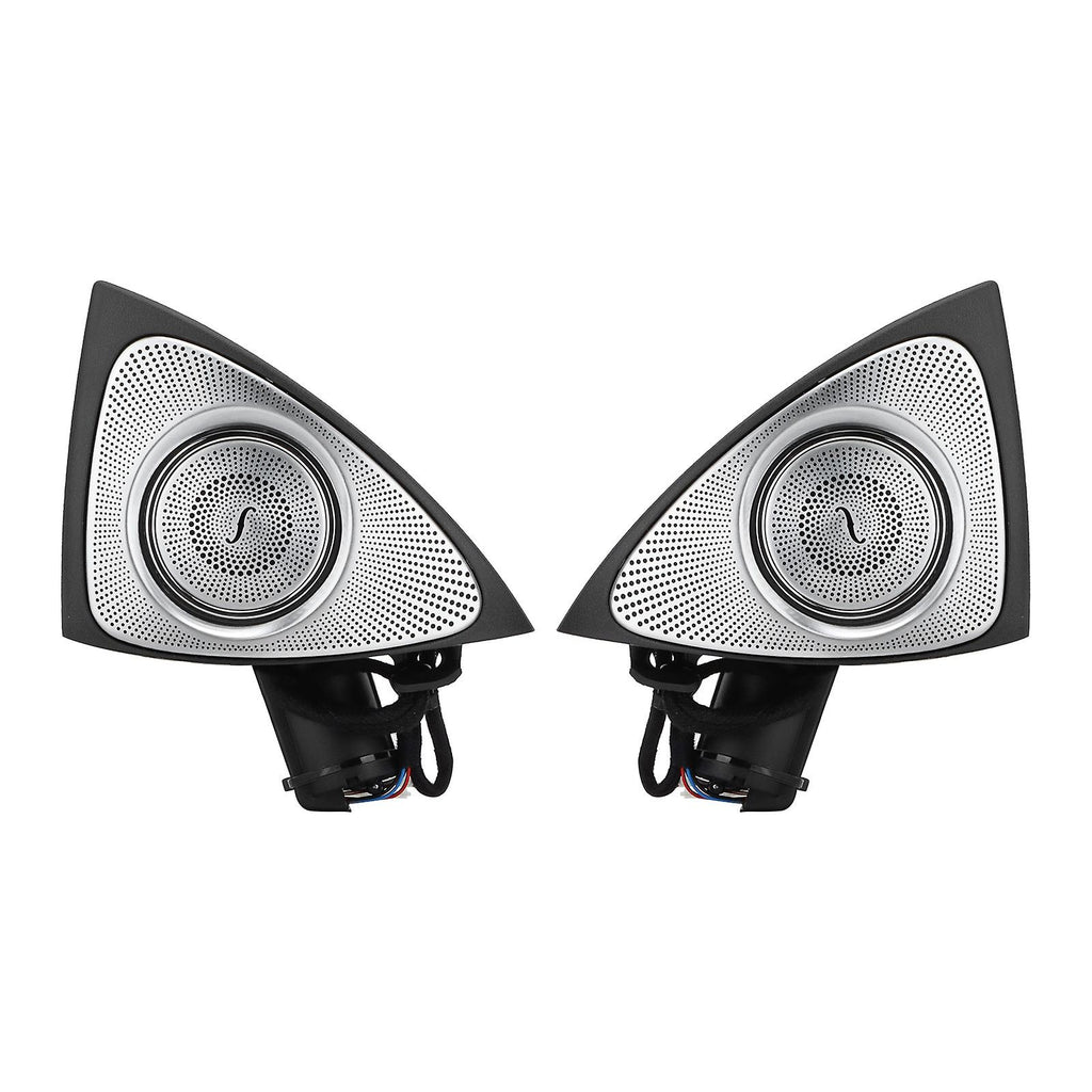Features 1??3D rotating tweeter, it will rotate when the car is started and will return to its position when the car flameout. Adopt silent motor to ensure no noise. 2??Designed with 64?color LED ambient light, the brightness and color change can be controlled by the original car central control knob switch. 3??Stainless steel cover, matte chrome surface treatment, the holes are finely engraved and exquisitely polished, smooth surface, no rough feeling. 4??Replacement for Mercedes?Benz S?Class W222 Facelift 2018?2020, designed to have the same size, fit and function as original rotating tweeter. 5??Plug and play, no need of wiring and coding, fully matching the original LED ambient lighting system. The tweeter will change color synchronously with the ambient light of the original car. Specification Item Type: Rotating Tweeter Material: Stainless Steel + ABS + PC Ambient Light Color: 64 Colors Mounting Position: Tweeter Fitment: Replacement for Mercedes-Benz S-Class W222 Facelift 2018-2020 (Not for Pre-Facelift 7-Color W222 2014-2017) Package List 1 Pair of Tweeter (Left + Right) 1 Pair of Harness Module(Left + Right)
