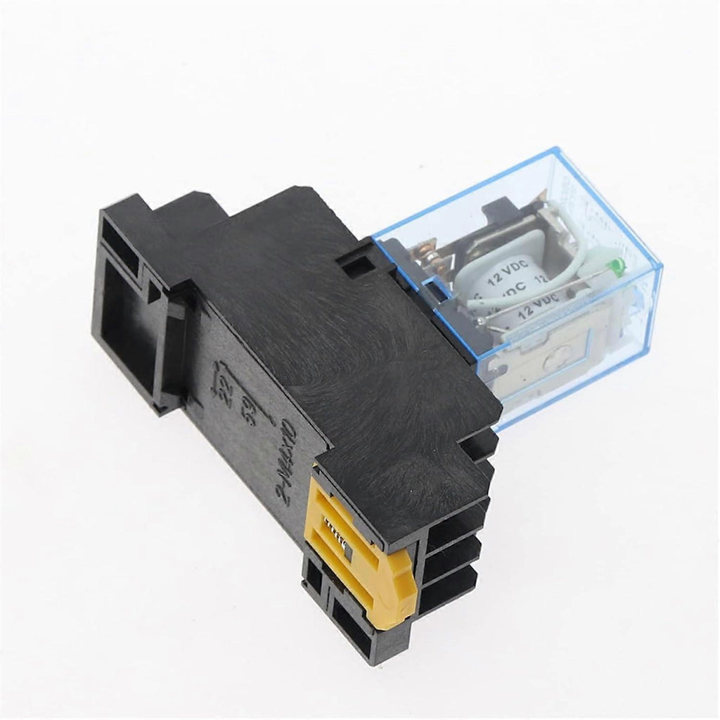 1. This product is a power relay with a socket base, model MY2NJ. 2. It has 8 pins and an action type of DPDT. 3. Suitable for general purpose applications. 4. The coil voltage options include 110V 220VAC, 12V, and 24VDC. 5. Comes in a pack of 10pcs and can be used with different voltages such as 12V, 24V DC or 110V, 220V AC, making it versatile for various electrical setups.