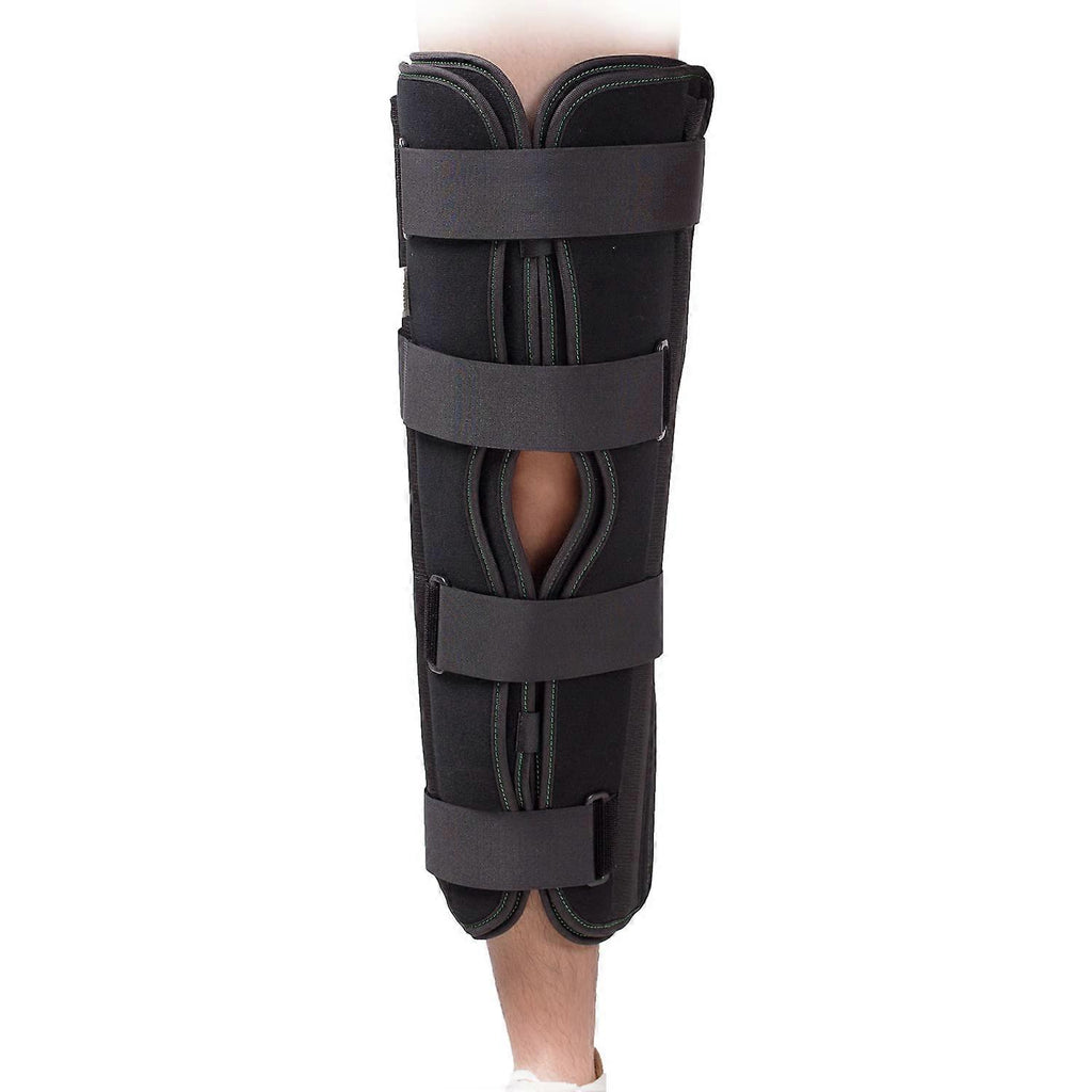 1.INDICATIONRecommended for knee sprains, patellar dislocations, post operative recovery, and other mild to severe knee and leg injuries. 2.HIGH QUALITY BREATHABLE MATERIALThis Leg Immobilizer Brace is completely filled with sponge and does not contain latex. It is made of soft and skinfriendly purified cotton, which is as comfortable to wear as a blanket 3.THREEPANEL DESIGN The threepanel design and six adjustable straps allow to accommodate most leg shapes and sizes. 4.FOUR REMOVABLE ALUMINUM BARS Knee Splint is built with highstrength metal bars, so that your legs do not bend but remain straight, restricting the movement of your legs to stabilize, fix and protect the knee.