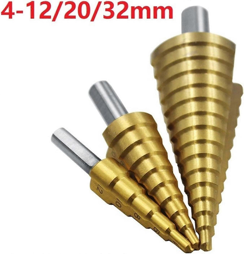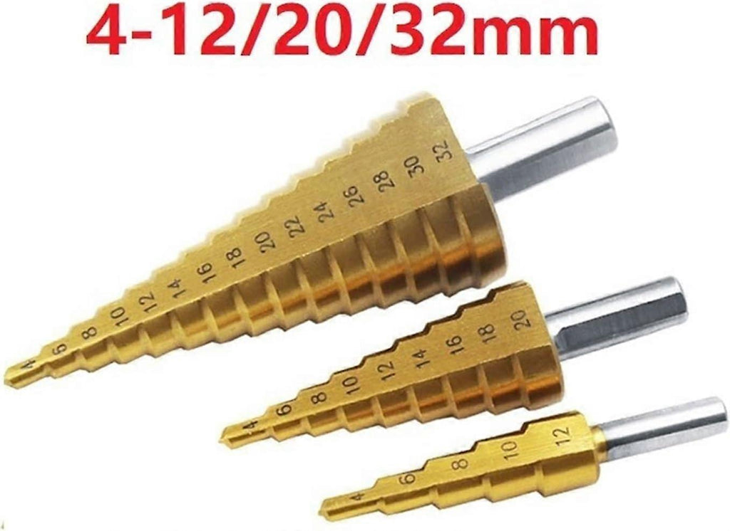 1. Made of highquality materials, sturdy and durable, with a long life 2. and high quality 3. Made of high quality material, durable and practical to use 4. 3PCS Kit HSS Grooved Step Cone Drill Bit Hole Cutting Tool Accessories Set 5. Design for cutting holes in carbon steel, thin iron, aluminum alloy, PVC sheet, etc