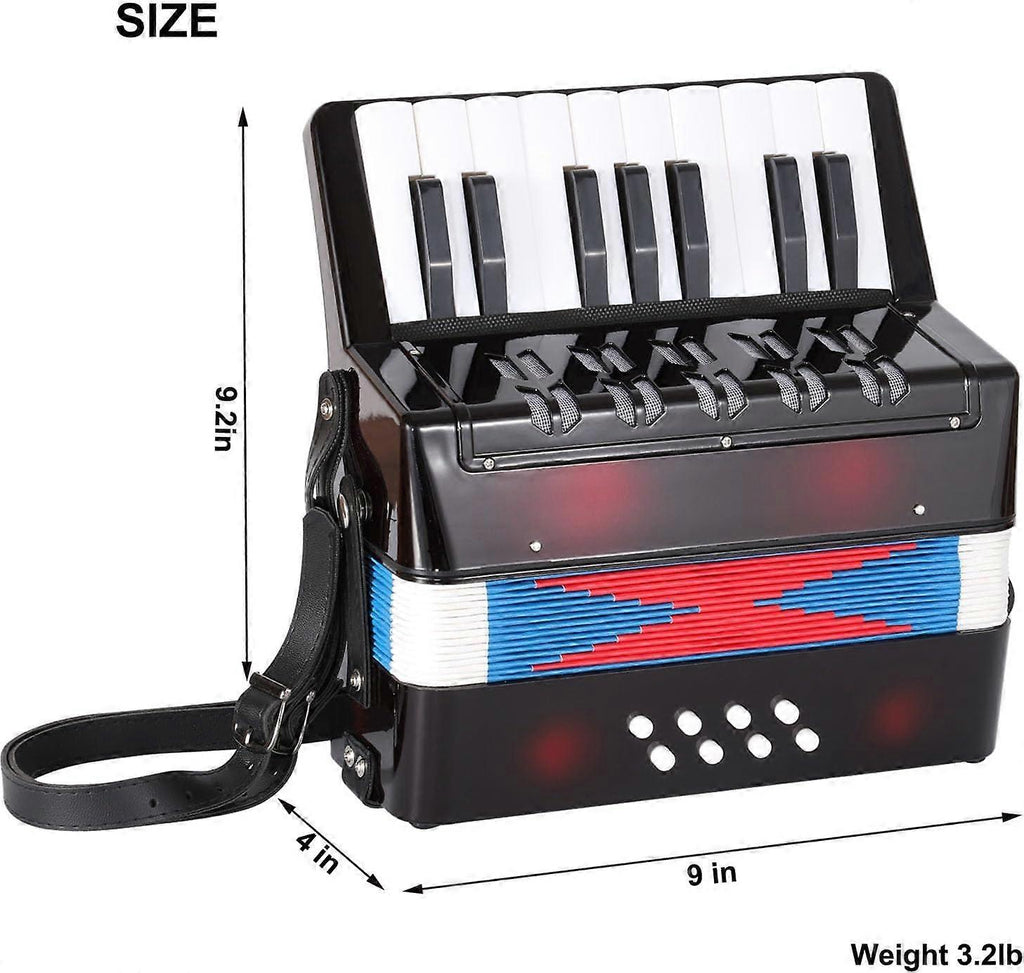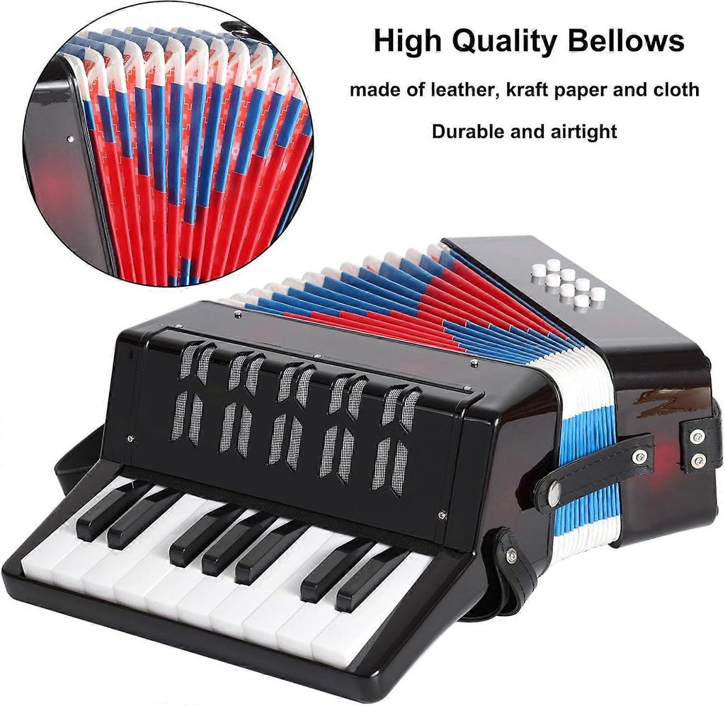 Accordion Mini Accordion 17 Piano key 8 Bass Button Accordian Education Musical Instrument for Beginner (Black)