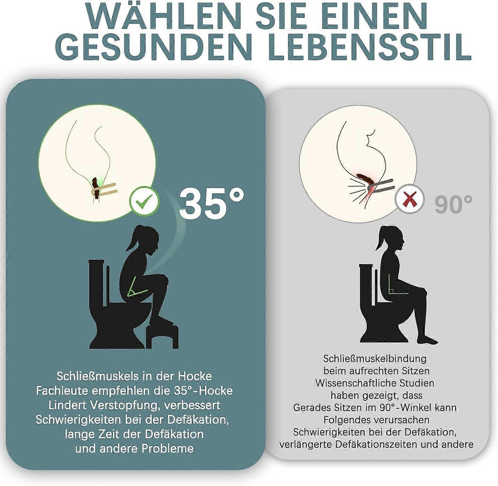 1. Makes bowel movements smoother: simply place your feet on the stool, your body is at a 35?? angle to achieve the perfect squatting position, completely relax the puborectalis muscle, so that the colon quickly and completely emptying, helps you effectively reduce constipation and hemorrhoids. 2. Curved design: the curved design fits perfectly with your toilet and saves space. Our adult toilet stool fits most standard toilets from 35.5 cm to 40.5 cm. 3. Superior weight bearing: Our toilet stool for adults is equipped with a super reinforced bar on the bottom, which can hold up to 90 kg, which you excellent load capacity and stability. 4. Removable design: when this stool is not in use, the legs can be removed for easy storage and space saving. Cleaning is easy, just rinse with soap and water.