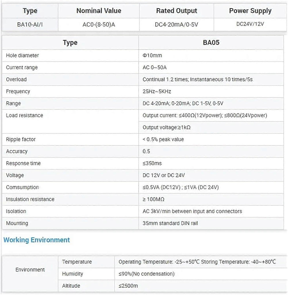 Current transformer split core BA50AI/I Output AC analog transducer