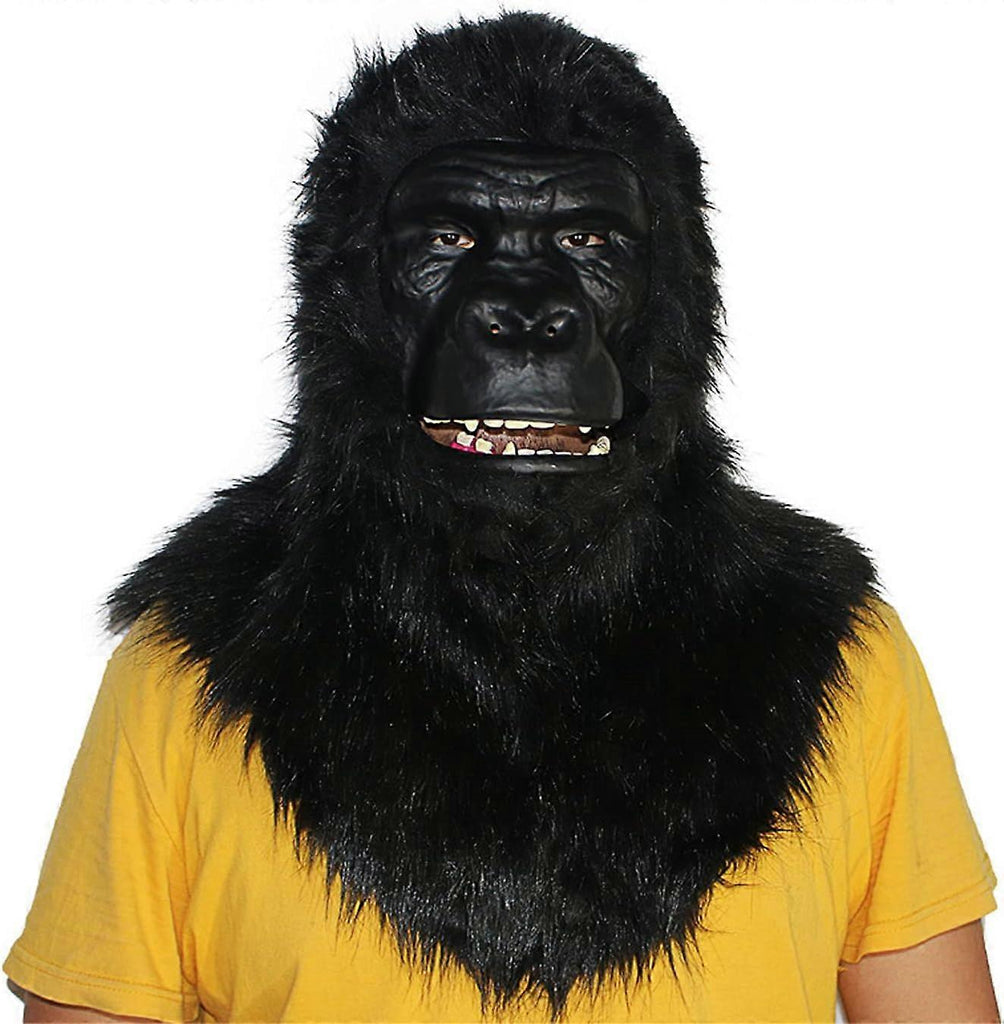Full Head Realistic Furry Gorilla Mask,Mouth Move Gorilla Mask, Moving Jaw Animal Mask Big Foot Mask for Halloween Christmas Costume Party Props