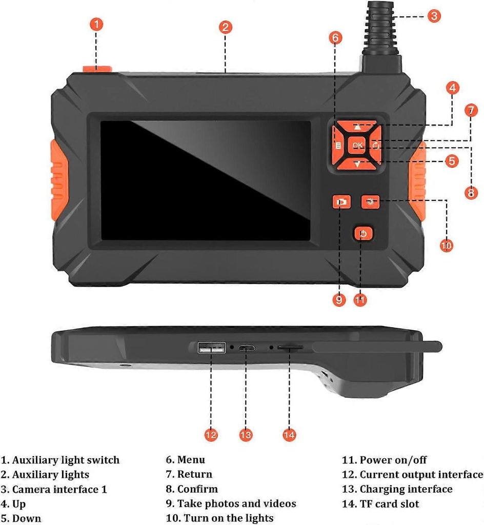 1. 4.3' LCD Screen Industrial Pipeline Drain EndoscopeWith maximum supported resolution of 1920x1080 pixels, the endoscope camera captures clear photos and records highquality videos easily. The 4.3' color LCD screen enables you to view live videos during inspection. It is ready to use immediately upon turning on, and it shows realtime images directly on the screen. 2. IP67 Camera Probe LED Lights The pipeline inspection camera has 6 super bright LEDs with 3 adjustable brightness levels to sufficient light for darker situations. The camera probe and LED lights are IP67 waterproof, suitable for dark areas, damp or wet areas, etc. 3. BatteryThis endoscope camera is equipped with a 2600 mAh highcapacity battery, so it can work continuously for up to 5 7 hours after being fully charged. It can be used throughout the day and is very convenient. With this sewer camera endoscope, you can instantly check the cause of abnormalities in various pipes, thus quickly solving problems and saving money. 4. Extra long cable CableThe cable length is 2M/ 5M/10M and can reach very deep. Made of semirigid material, it is stiff enough to pass through the clogged pipe and can be easily wrapped around a push rod for convenient storage.