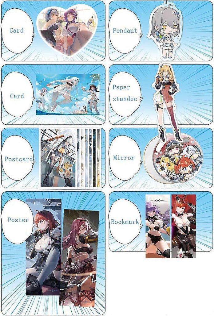 1. This Snowbreak Containment Zone Gift Box Set is a perfect choice for fans. It comes with a variety of collectibles. 2. The set includes a keychain pendant charm, greeting card, brooch pin, postcard, water bottle, bookmark, and mirror. 3. It features characters like Lyfe, Haru, Mauxir, Fritia, Siris, Fenny, Aracia, Yao, Tess, etc. 4. It's a complete set, making it an ideal gift for enthusiasts of the game. 5. The gift box has a size of 25x22x7.5cm, presenting a well packaged collection.