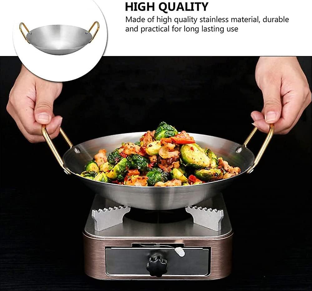 1. It is easy to wash because the food does not stick to the surface, you can simply wash it with hot water. 2. With fine processing, very practical in use. 3. Made of stainless material, durable and practical for a long life. 4. Thickened double ear handle design to prevent your hands from burning while cooking.