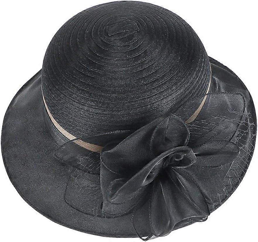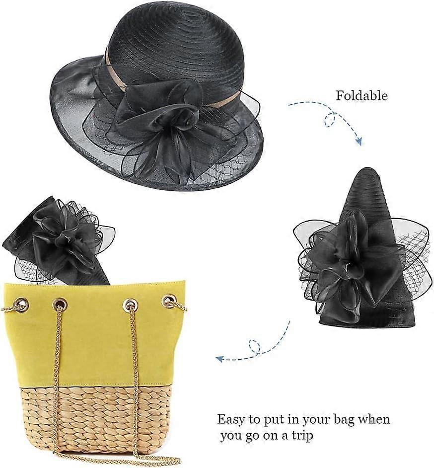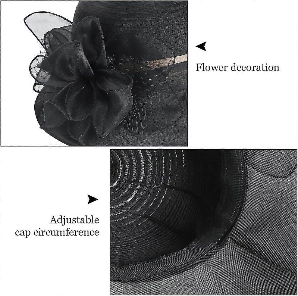 Womens Organza Fascinator Hat Wide Brim Flower Band Organza Sun Hat Church Cloche Hat Tea Party Fascinator Bucket Bowler Hat