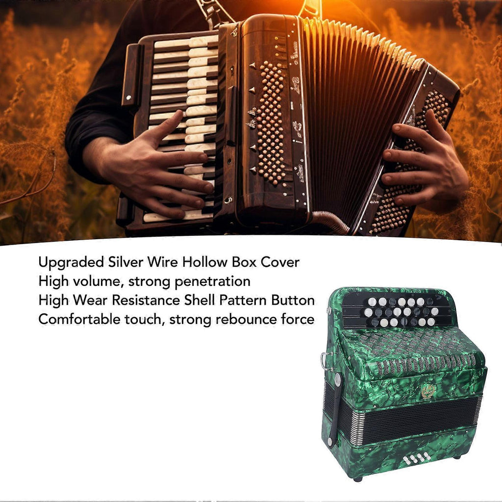 22 Key 8 Bass Accordion Professional Anti Slip Sensitive Button Accordion Musical Instrument with Strap Green